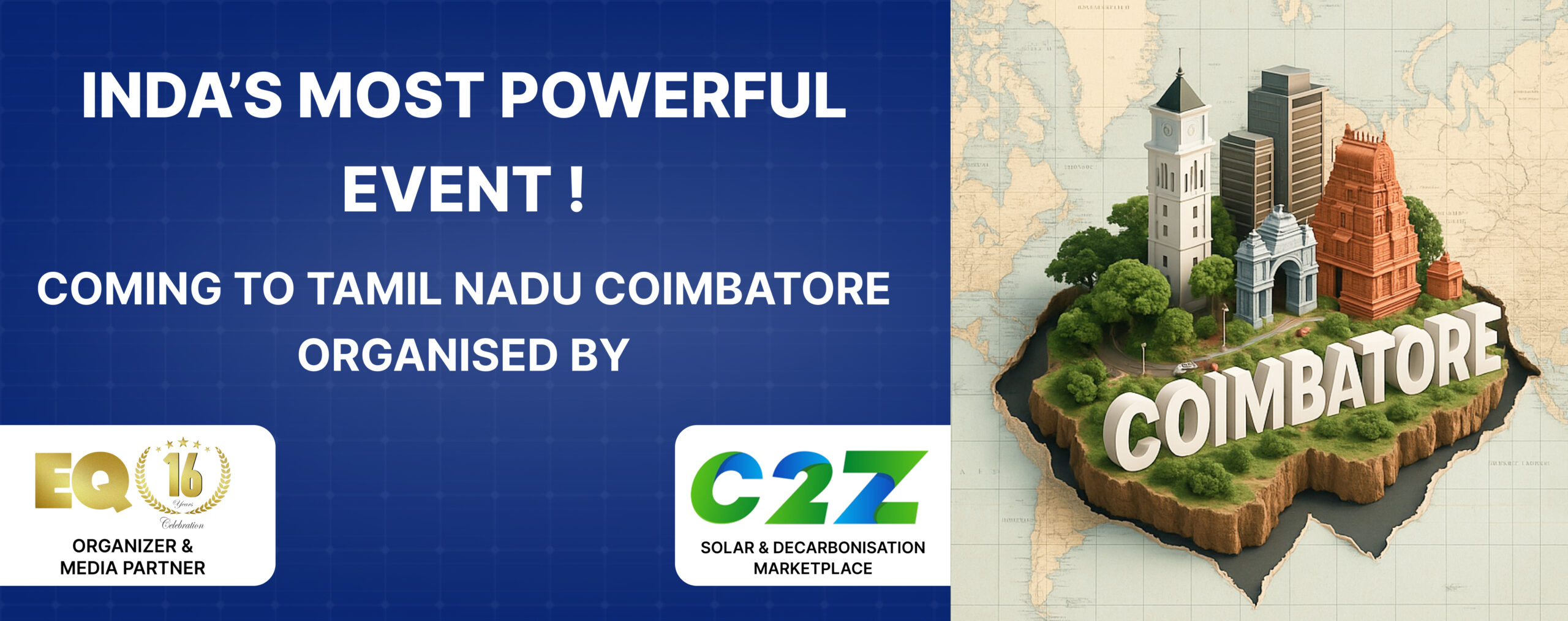Organised by EQ International, the Coimbatore edition will take place from 20–22 May 2026 at Codissia Trade Fair Complex. This grand event will bring together the biggest names in solar, renewable energy, sustainability, and clean technologies under one roof. With innovative product showcases, insightful conferences, and impactful networking opportunities, this expo is set to become the ultimate stage for leaders, innovators, and changemakers driving India’s clean energy transition and Net Zero vision.