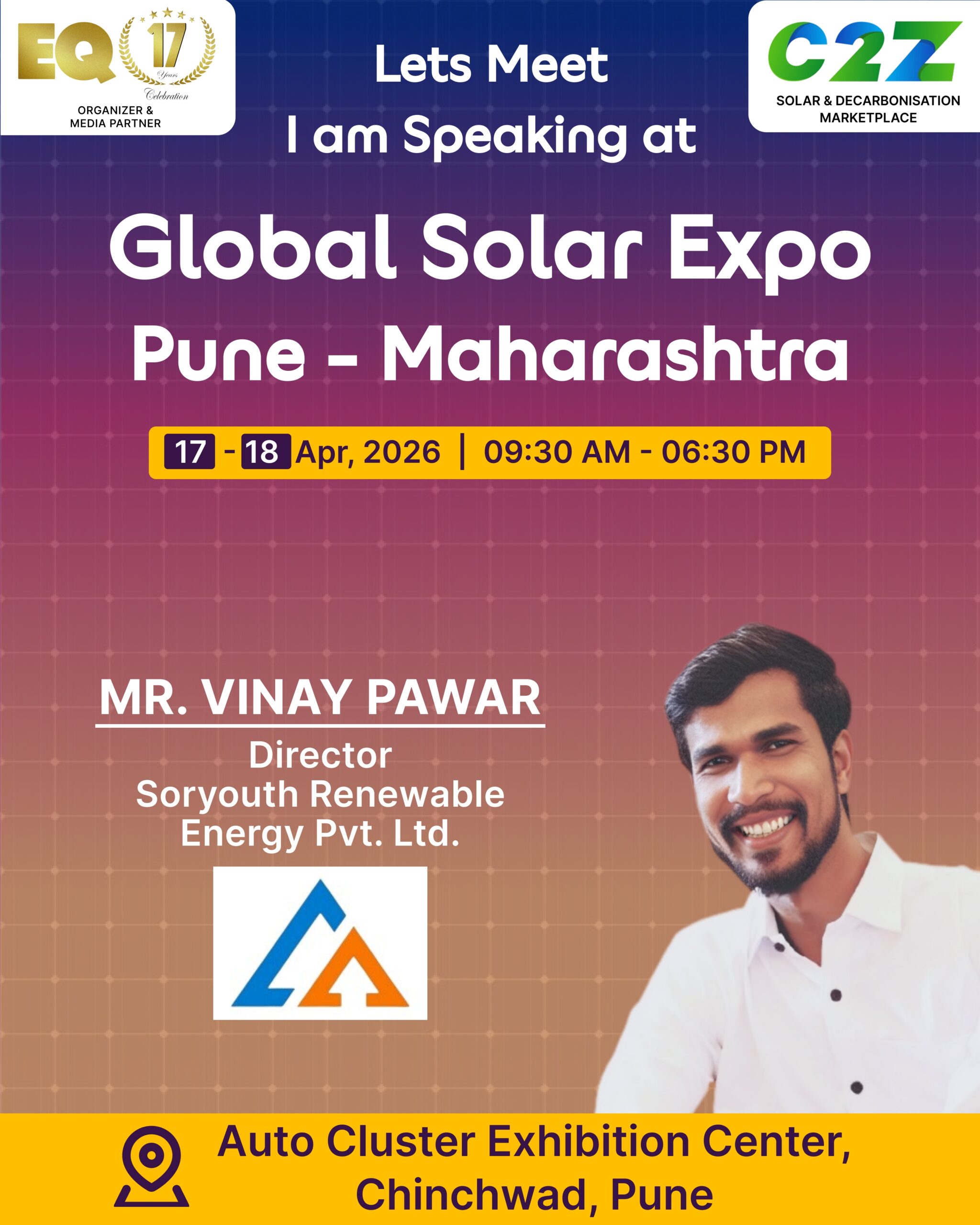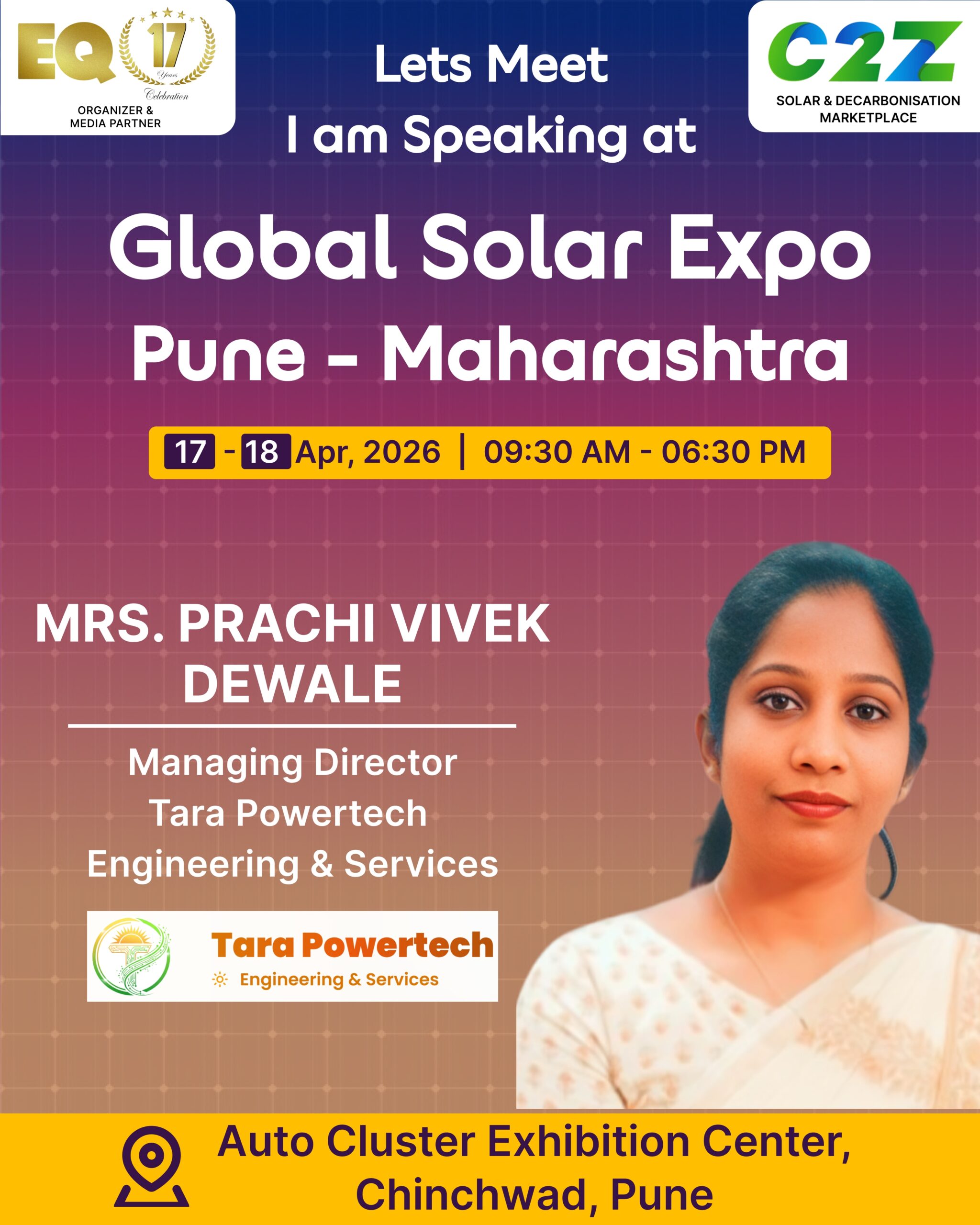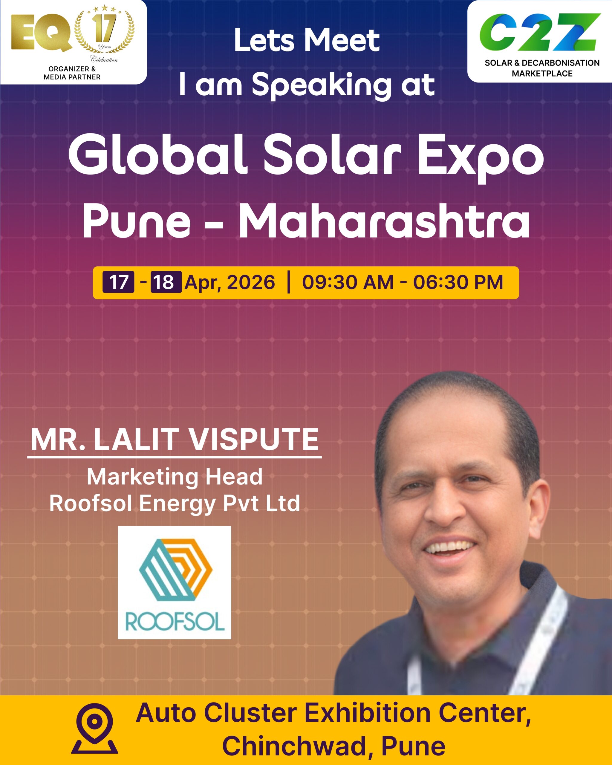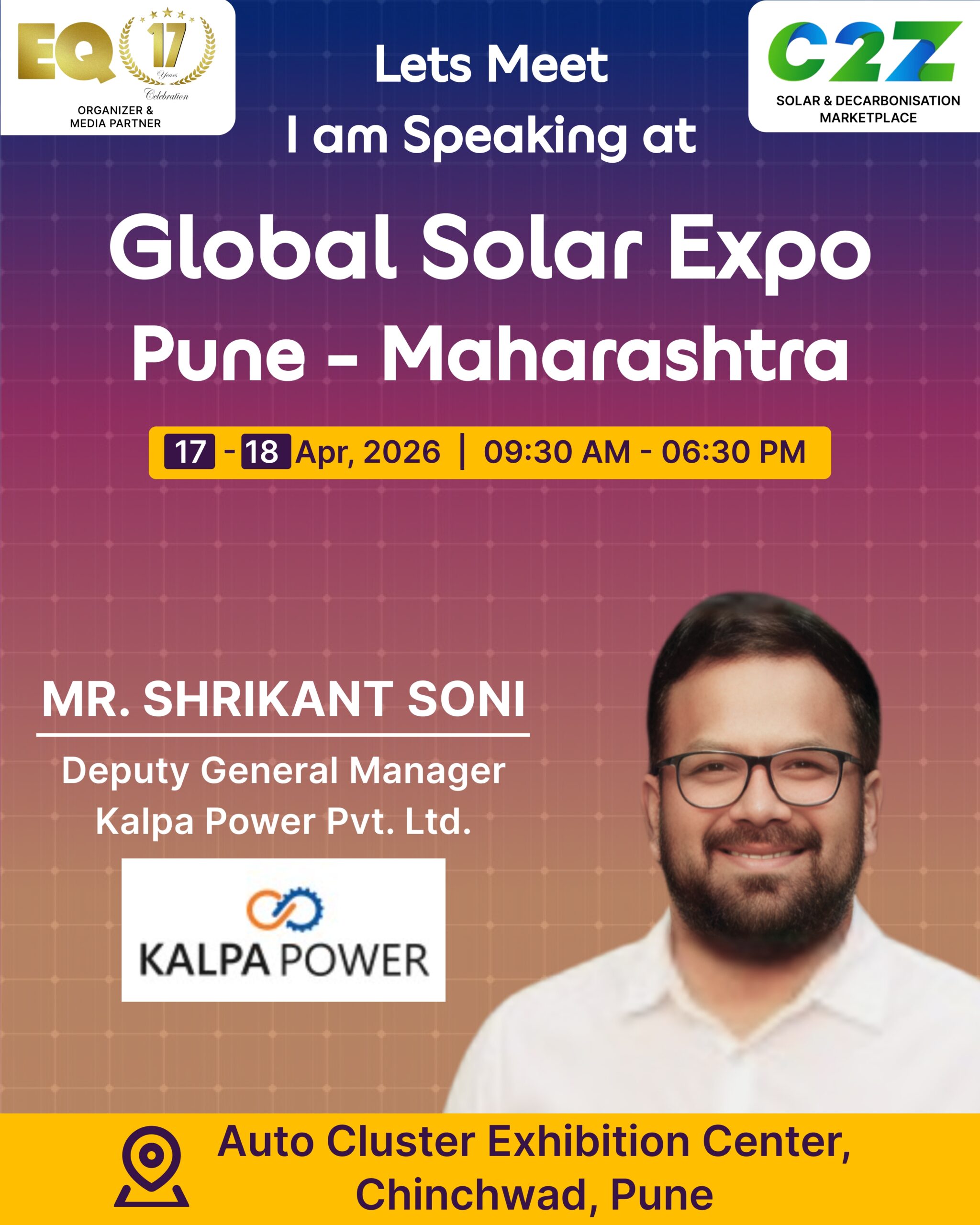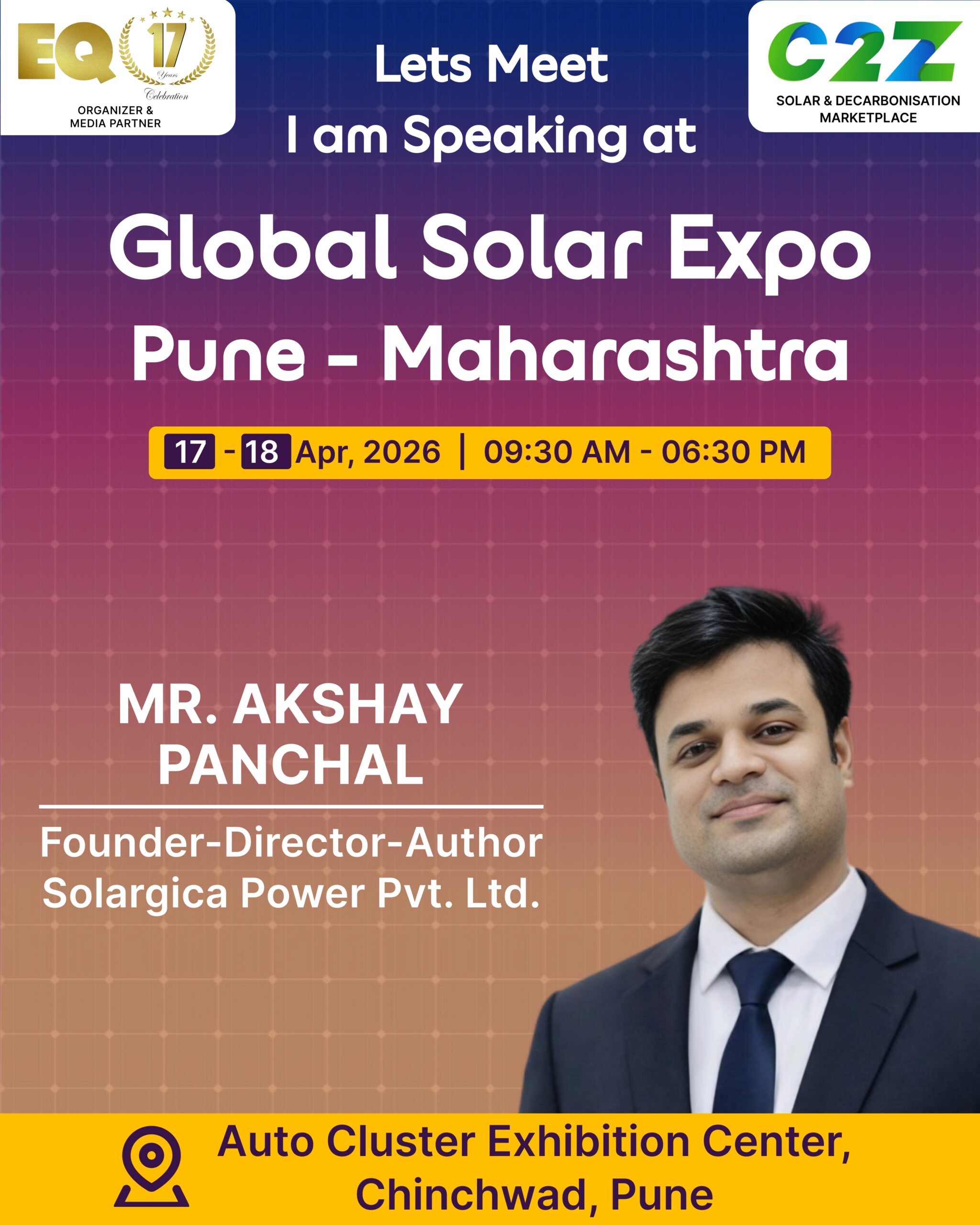Organised by EQ International, the Pune edition is set to make a powerful mark at on 17–18 April 2026. This mega event will bring together the leading names in solar, renewable energy, sustainability, and clean technologies.