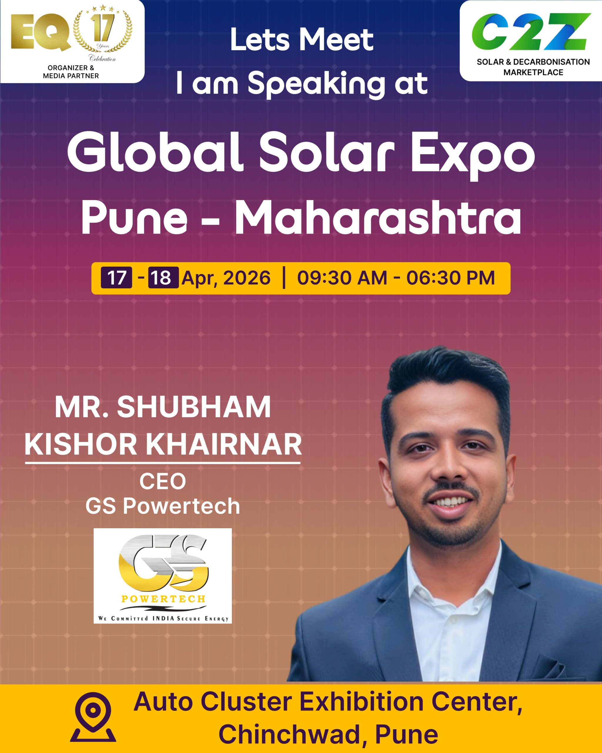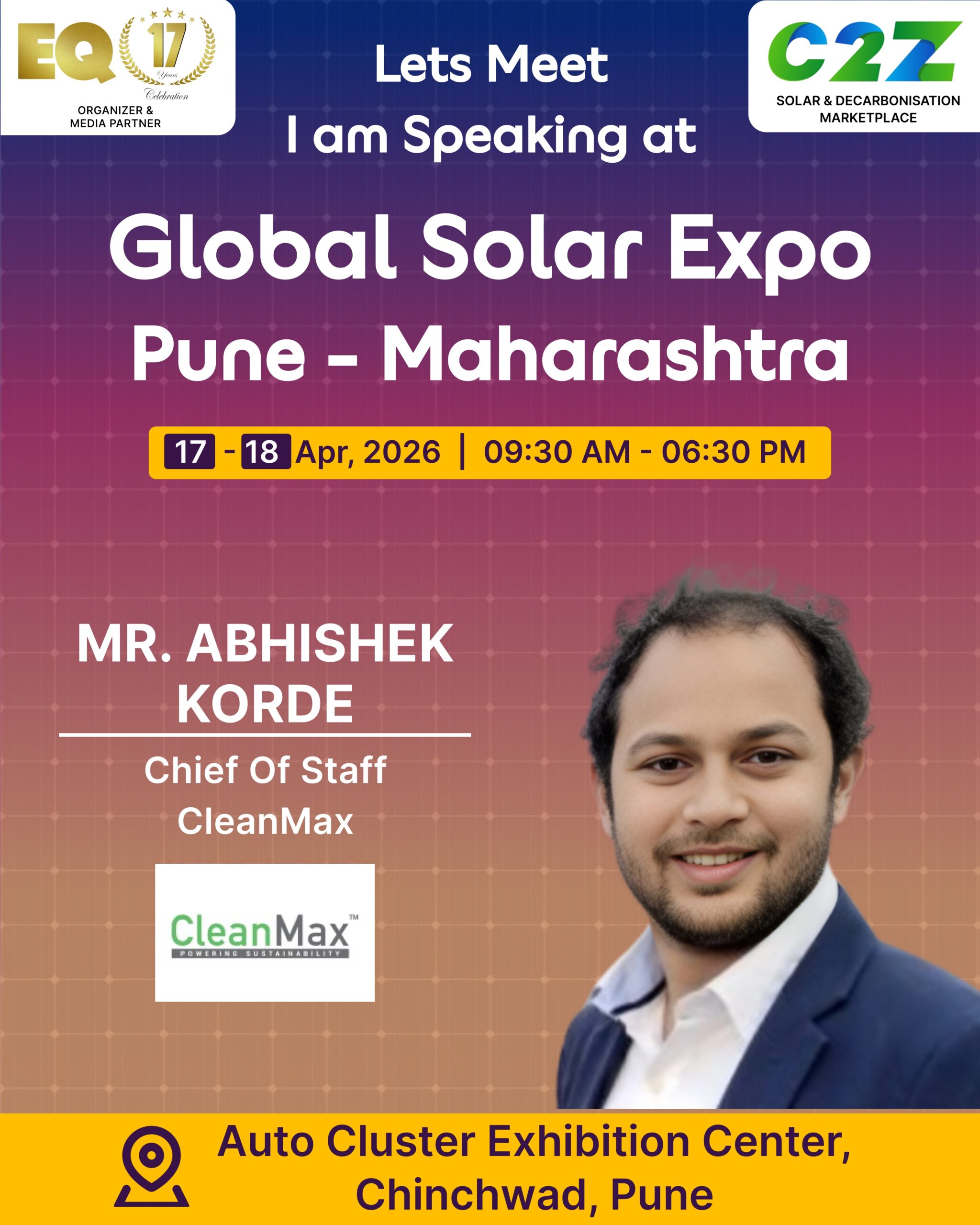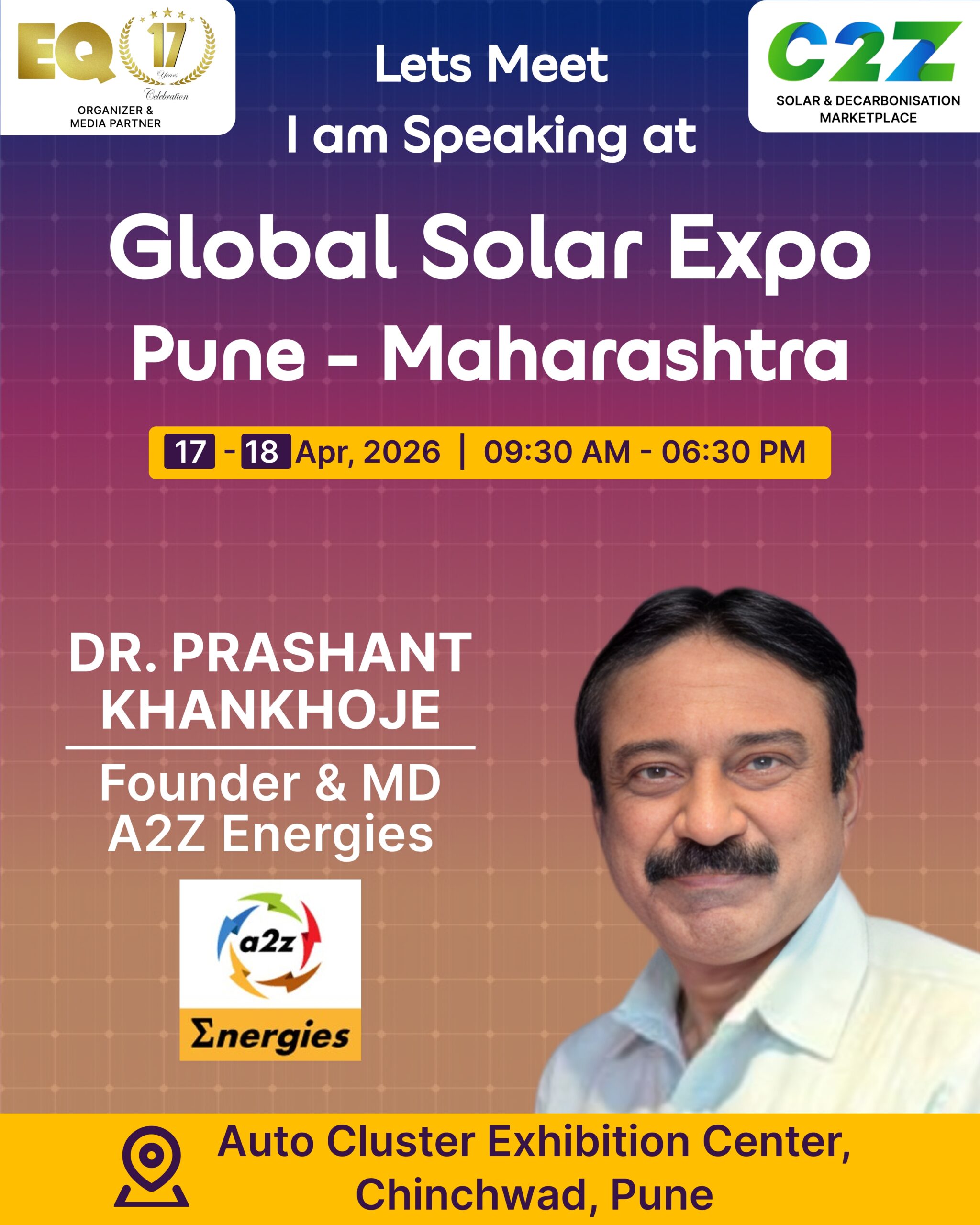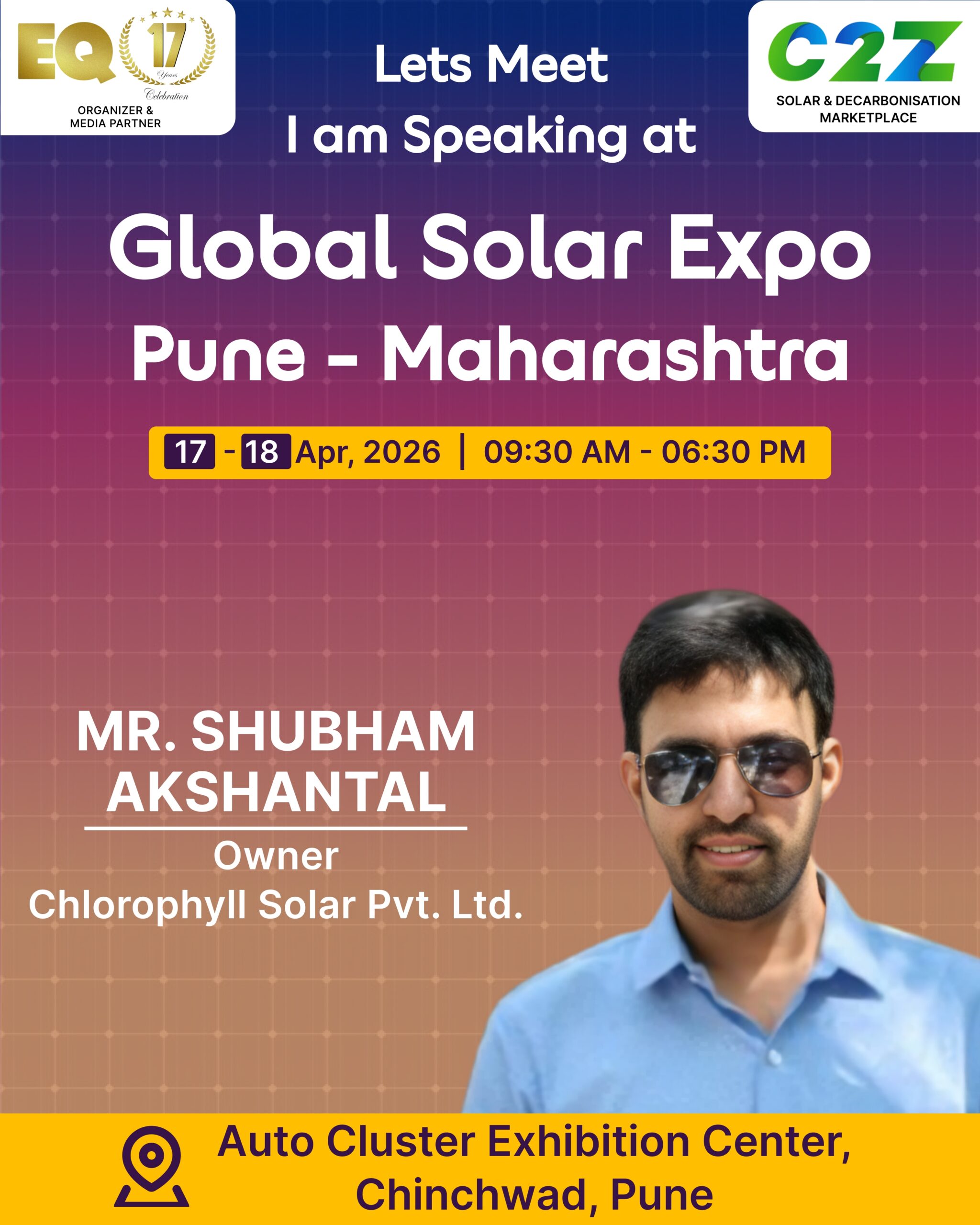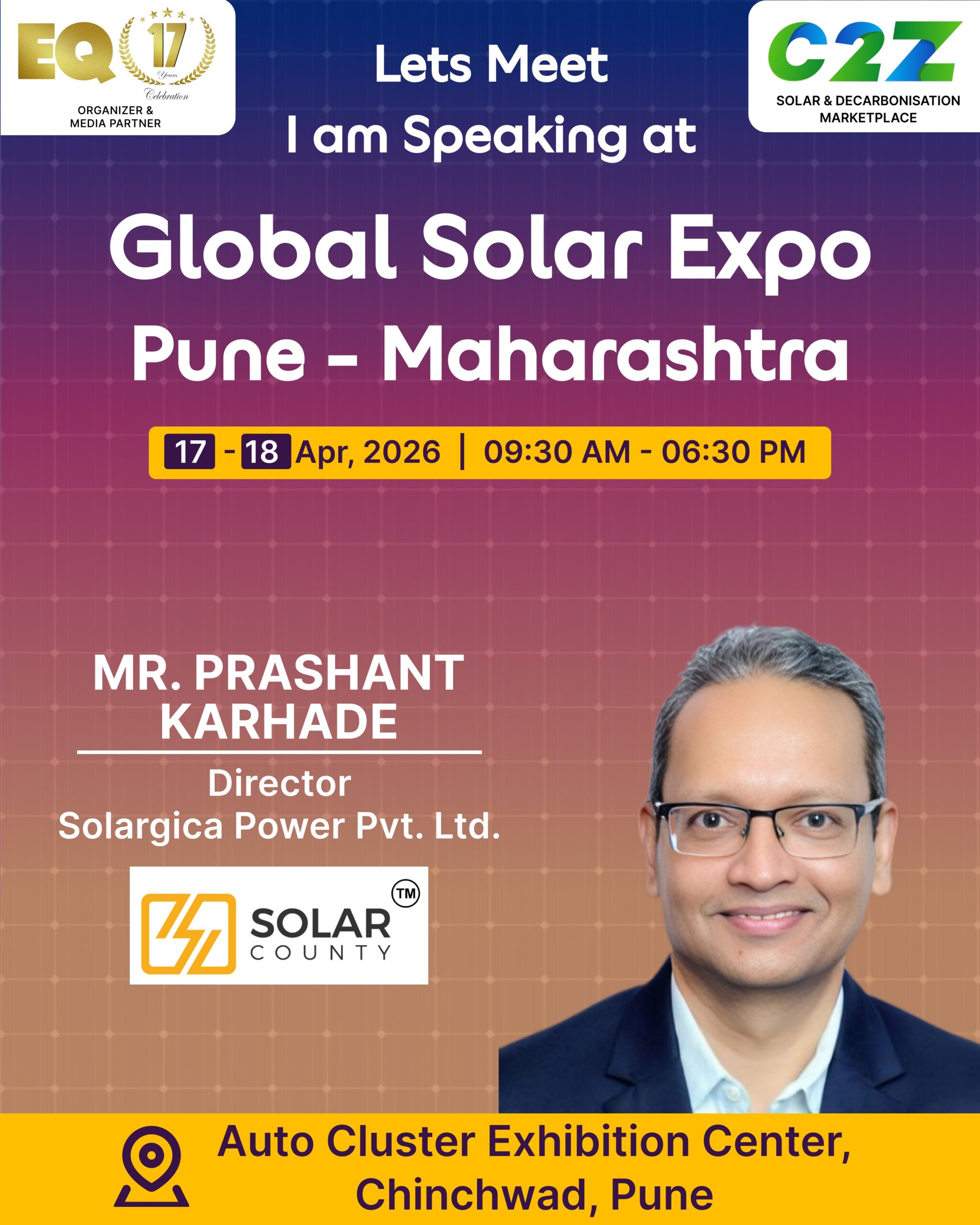 Organised by EQ International, the Pune edition is set to make a powerful mark at on 17–18 April 2026. This mega event will bring together the leading names in solar, renewable energy, sustainability, and clean technologies.