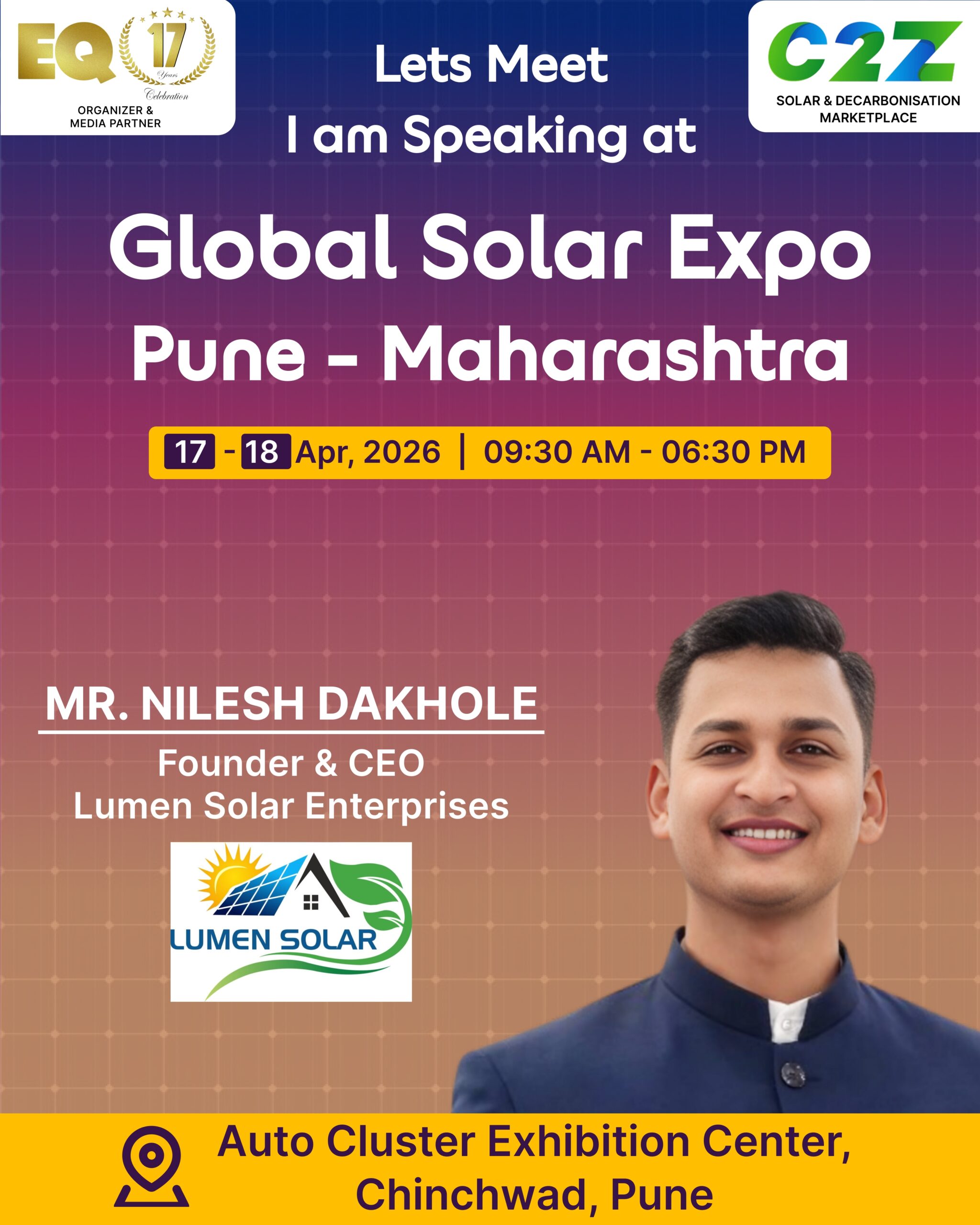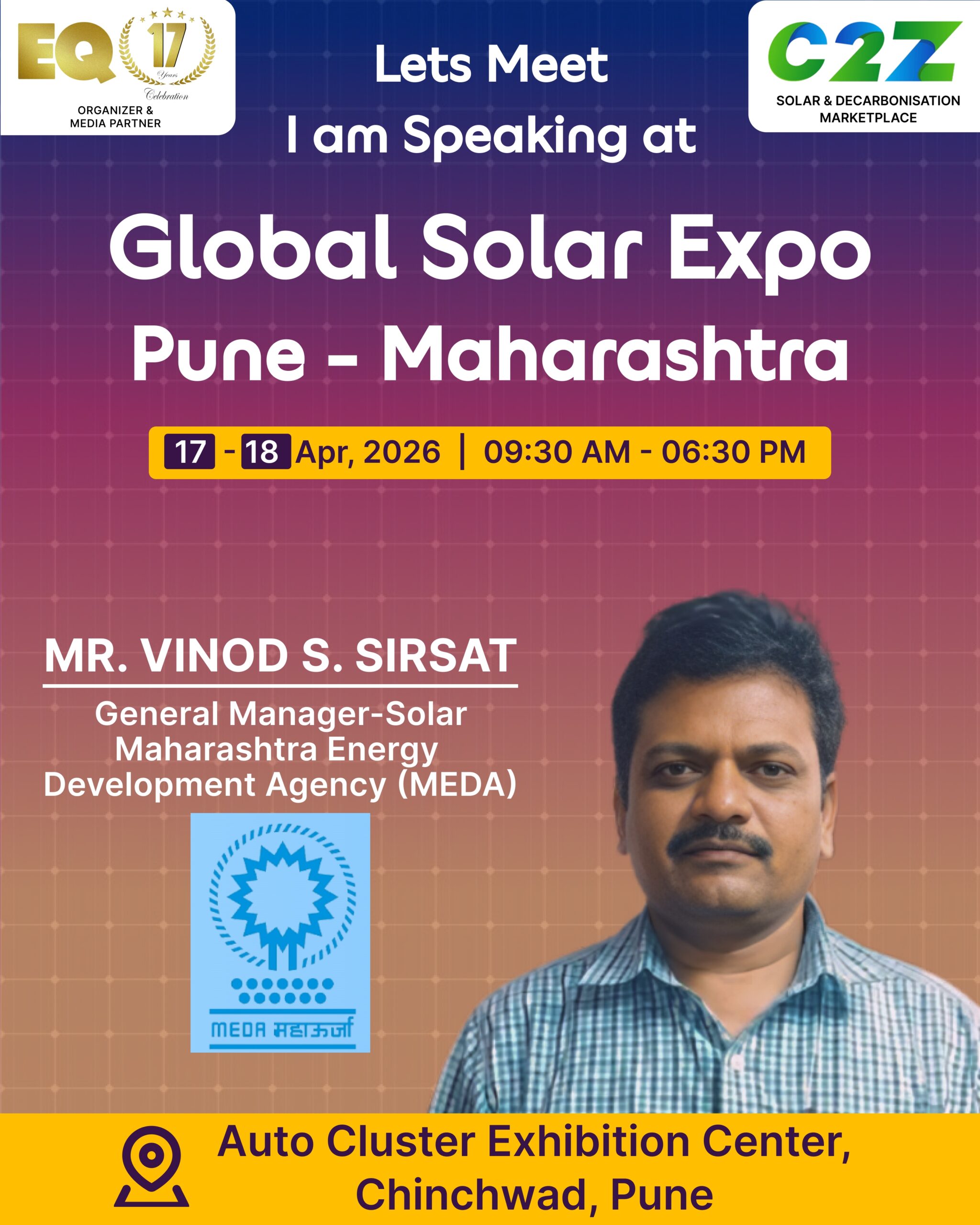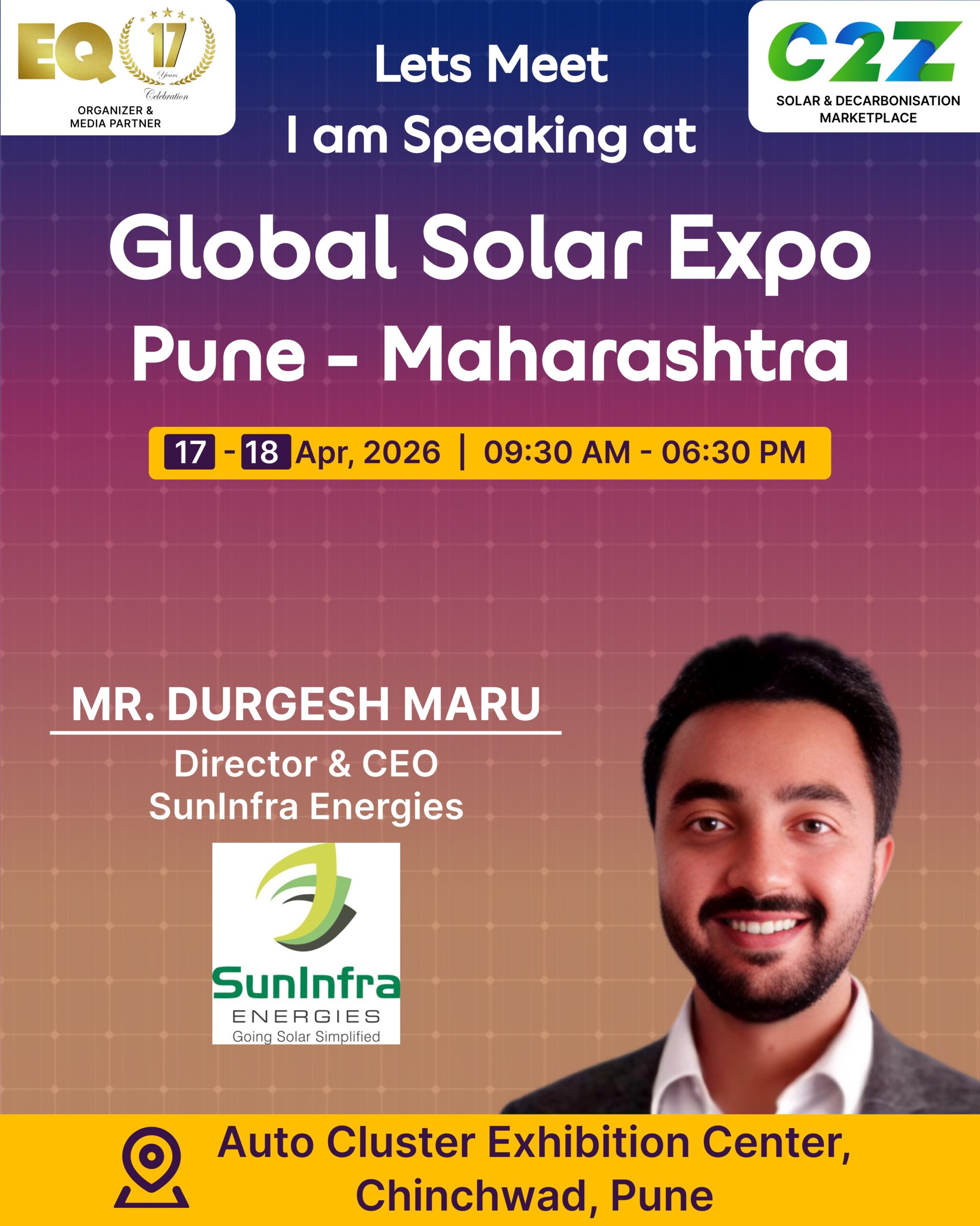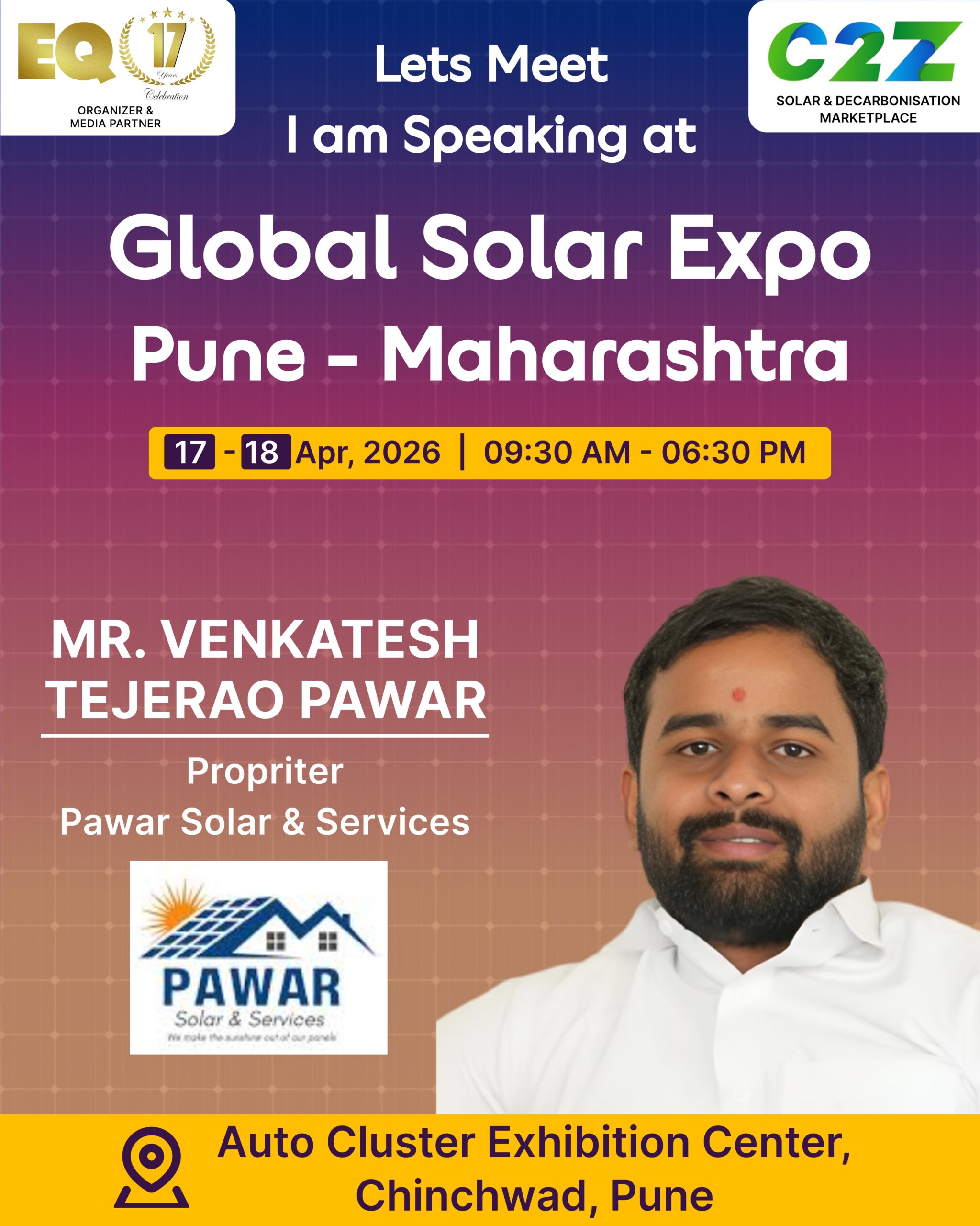 Organised by EQ International, the Pune edition is set to make a powerful mark at on 17–18 April 2026. This mega event will bring together the leading names in solar, renewable energy, sustainability, and clean technologies.