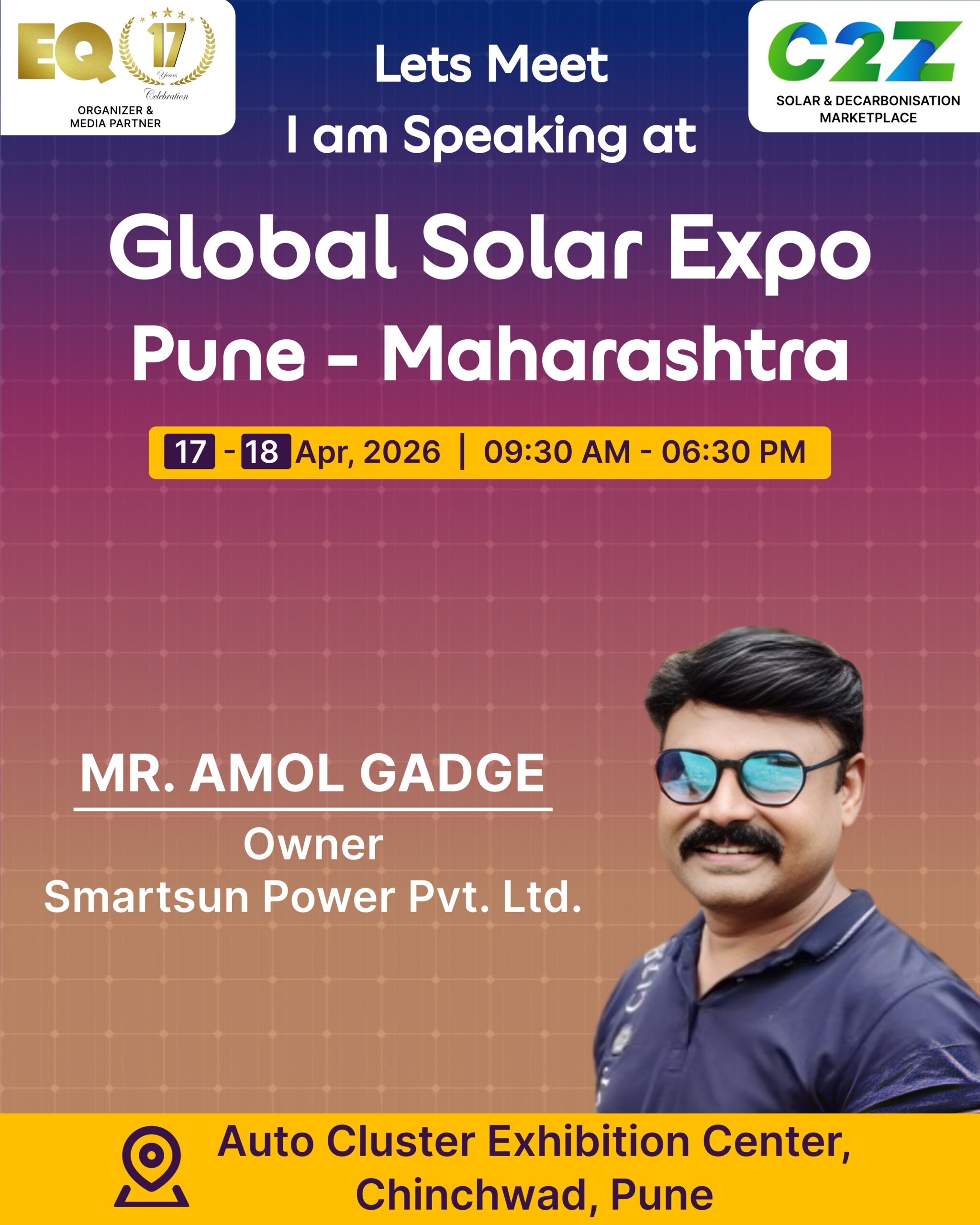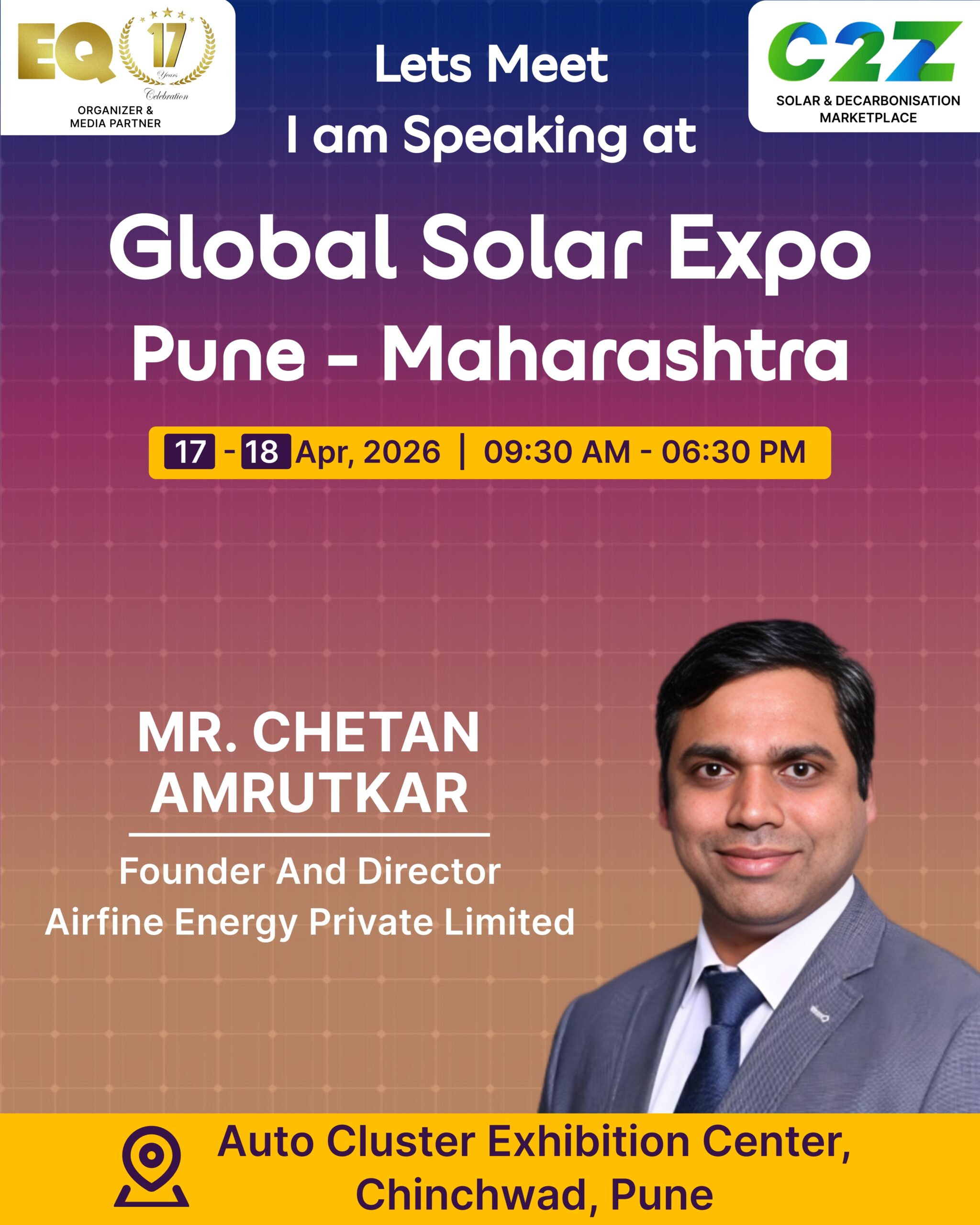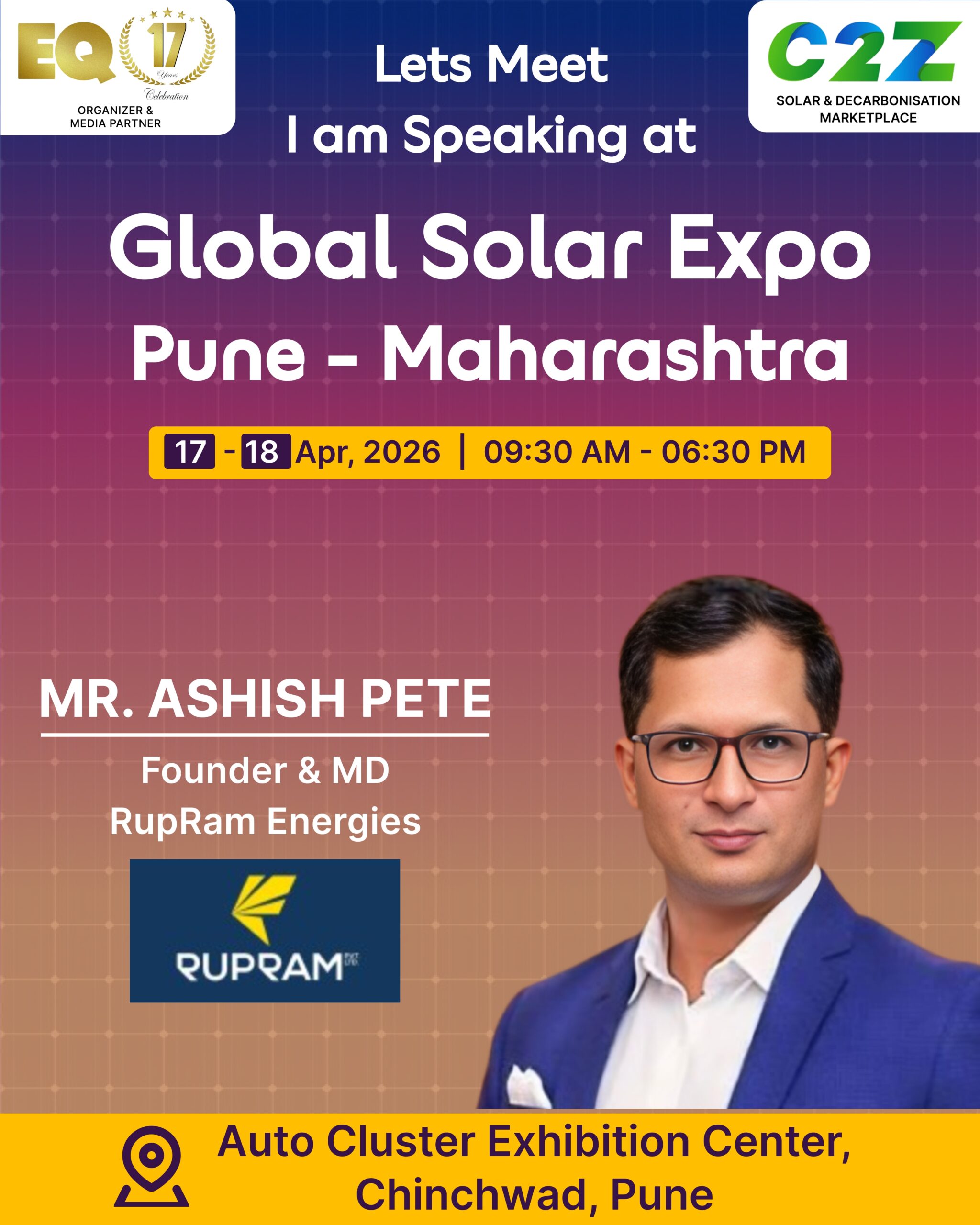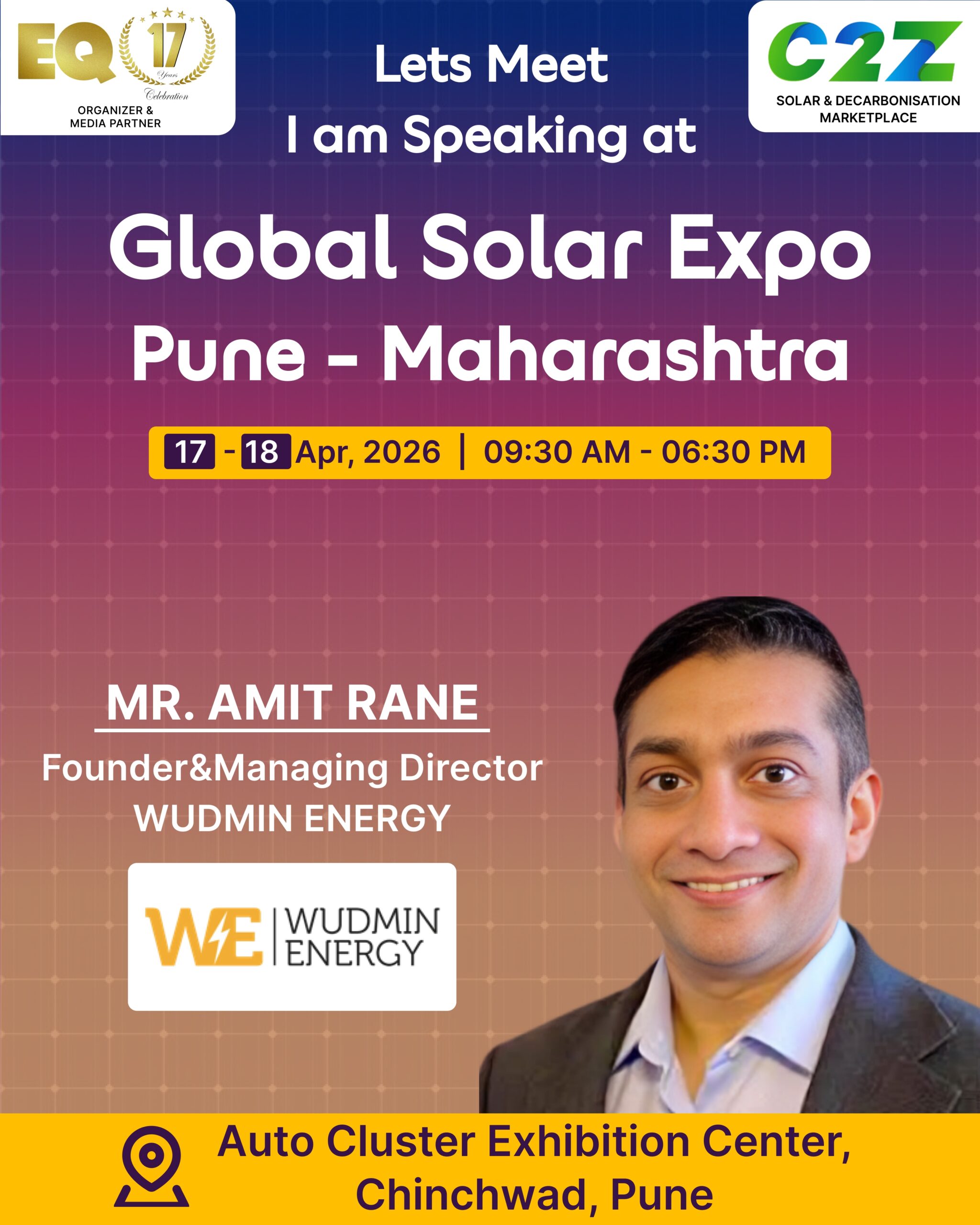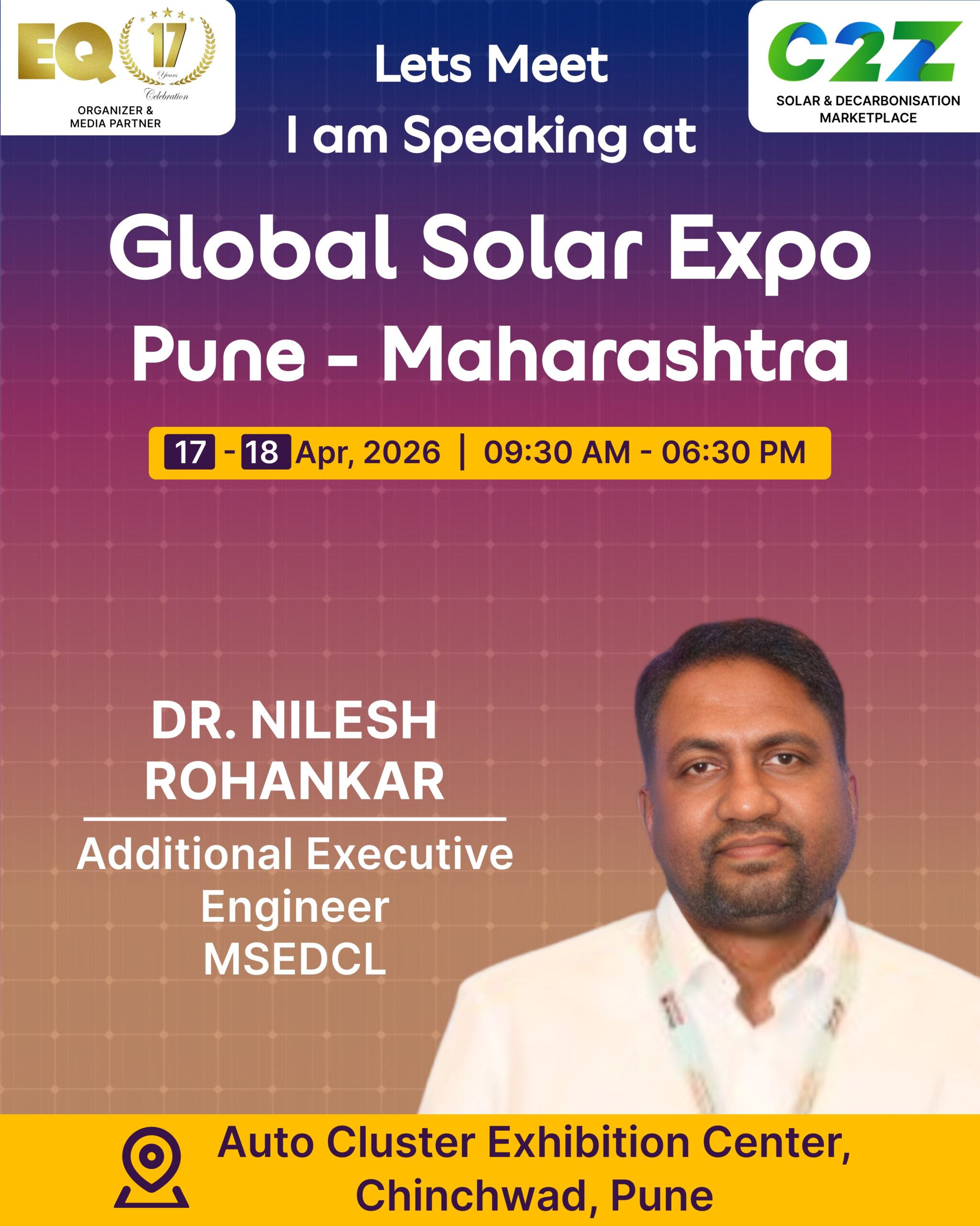 Organised by EQ International, the Pune edition is set to make a powerful mark at on 17–18 April 2026. This mega event will bring together the leading names in solar, renewable energy, sustainability, and clean technologies.