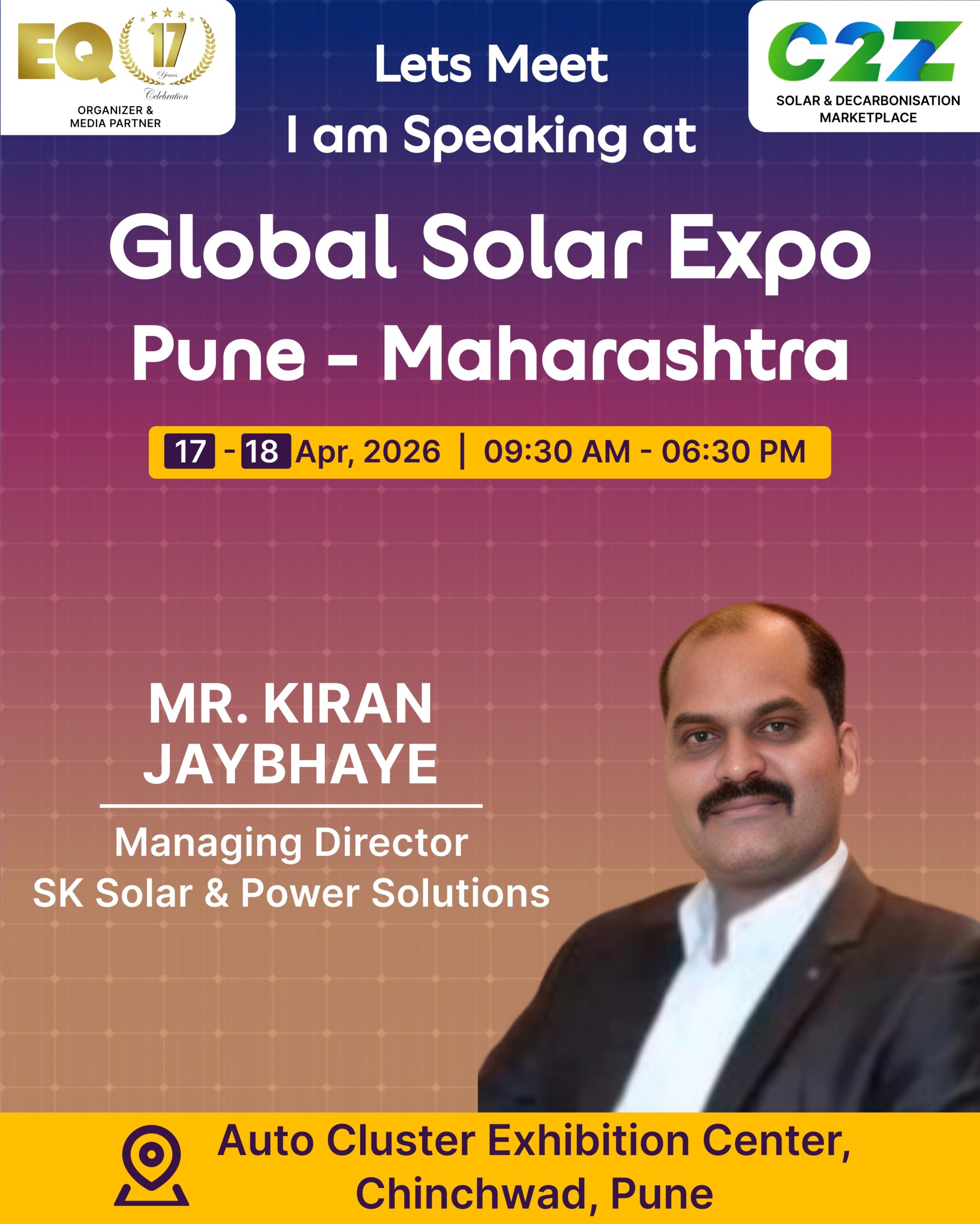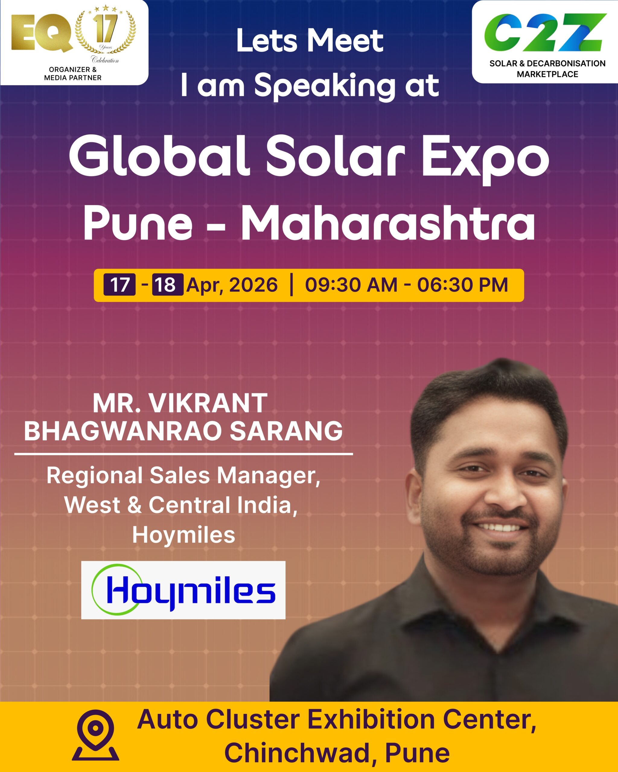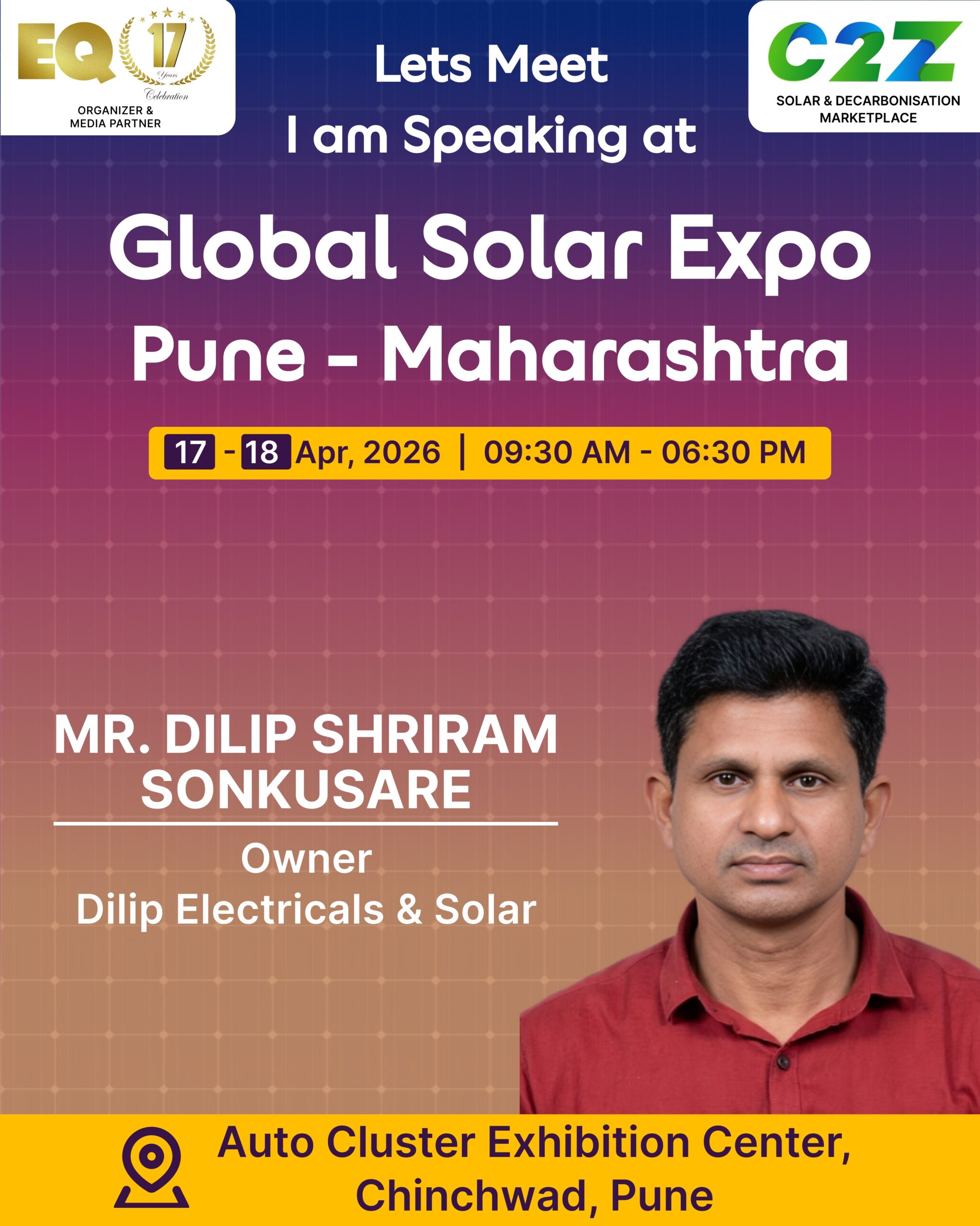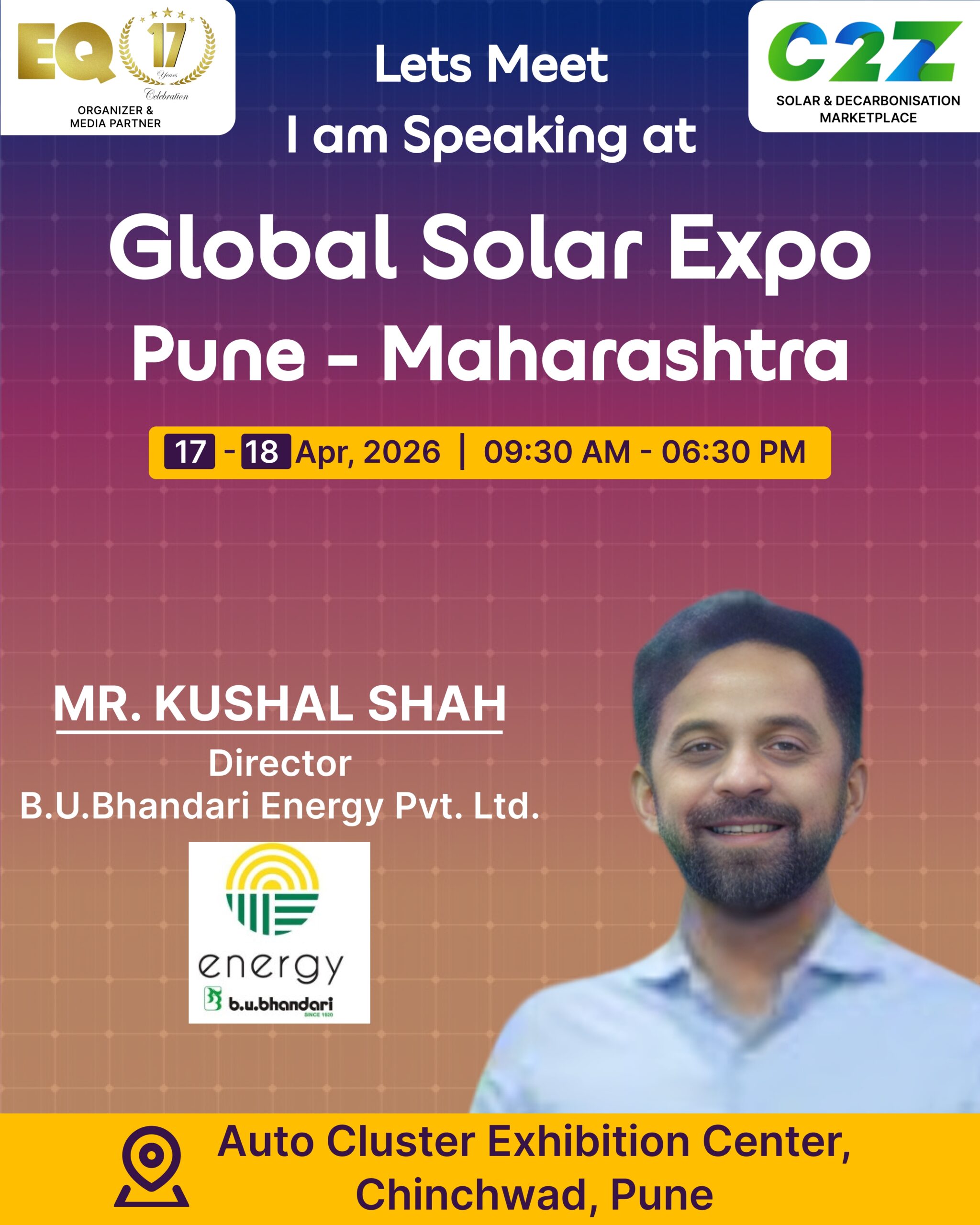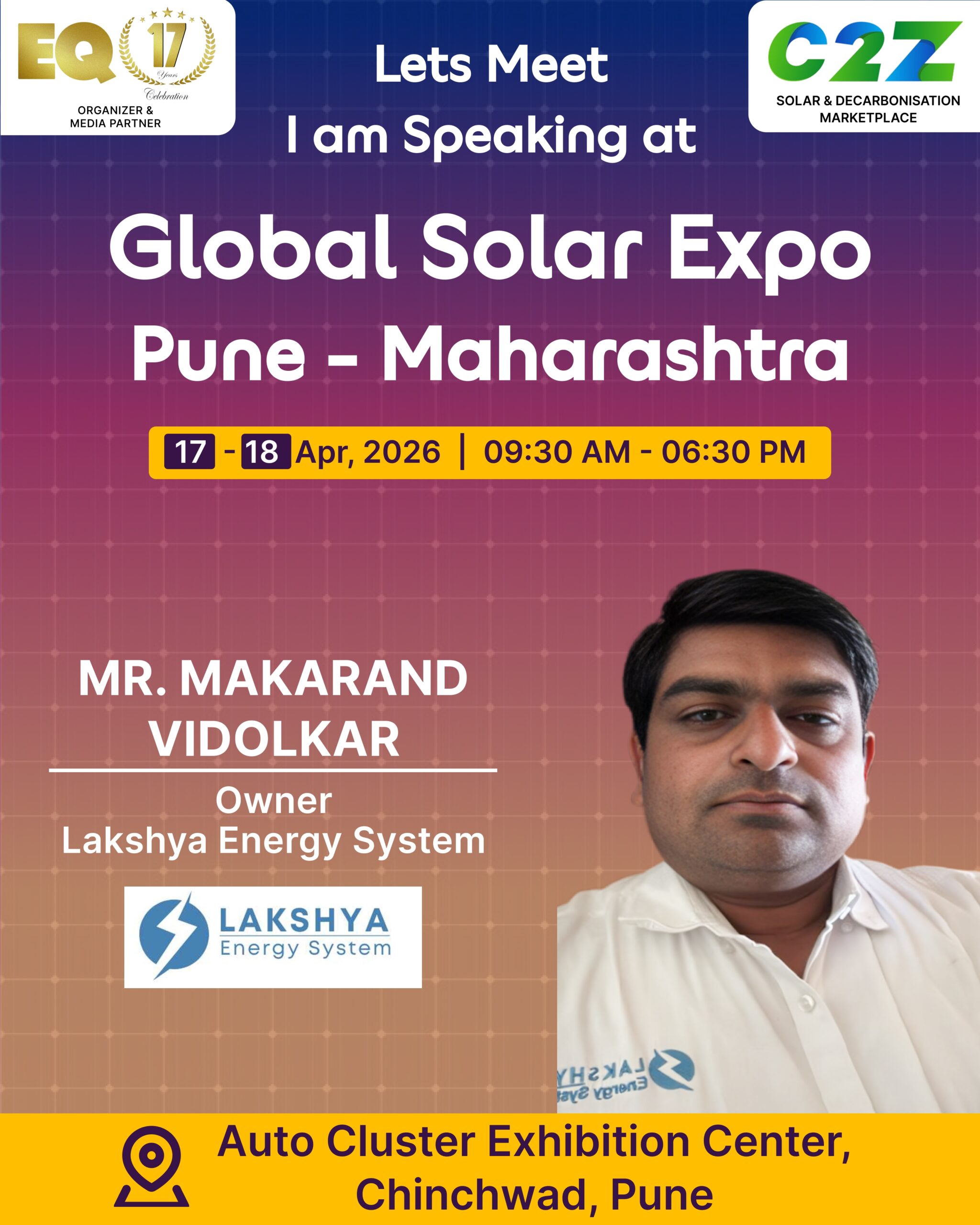 Organised by EQ International, the Pune edition is set to make a powerful mark at on 17–18 April 2026. This mega event will bring together the leading names in solar, renewable energy, sustainability, and clean technologies.