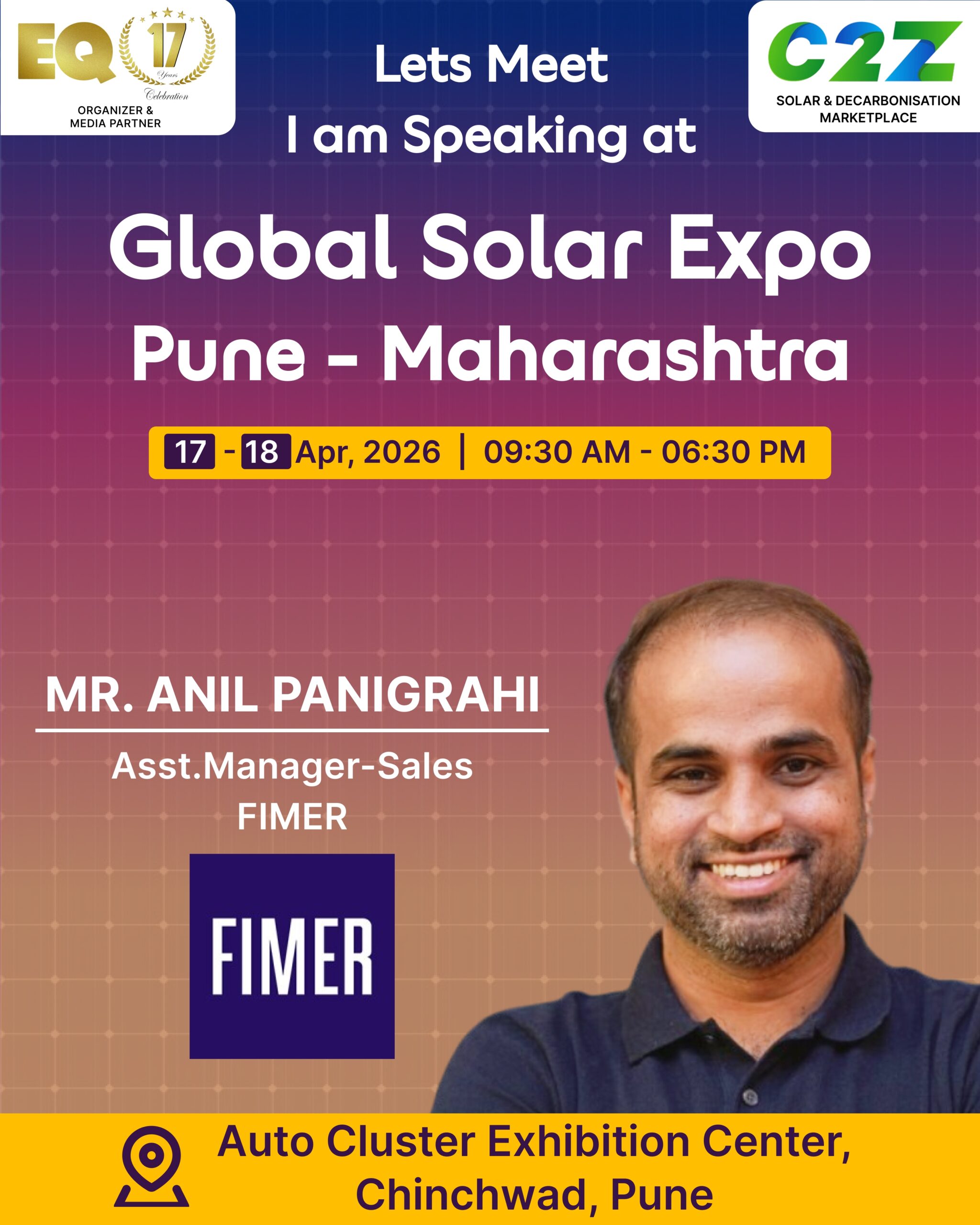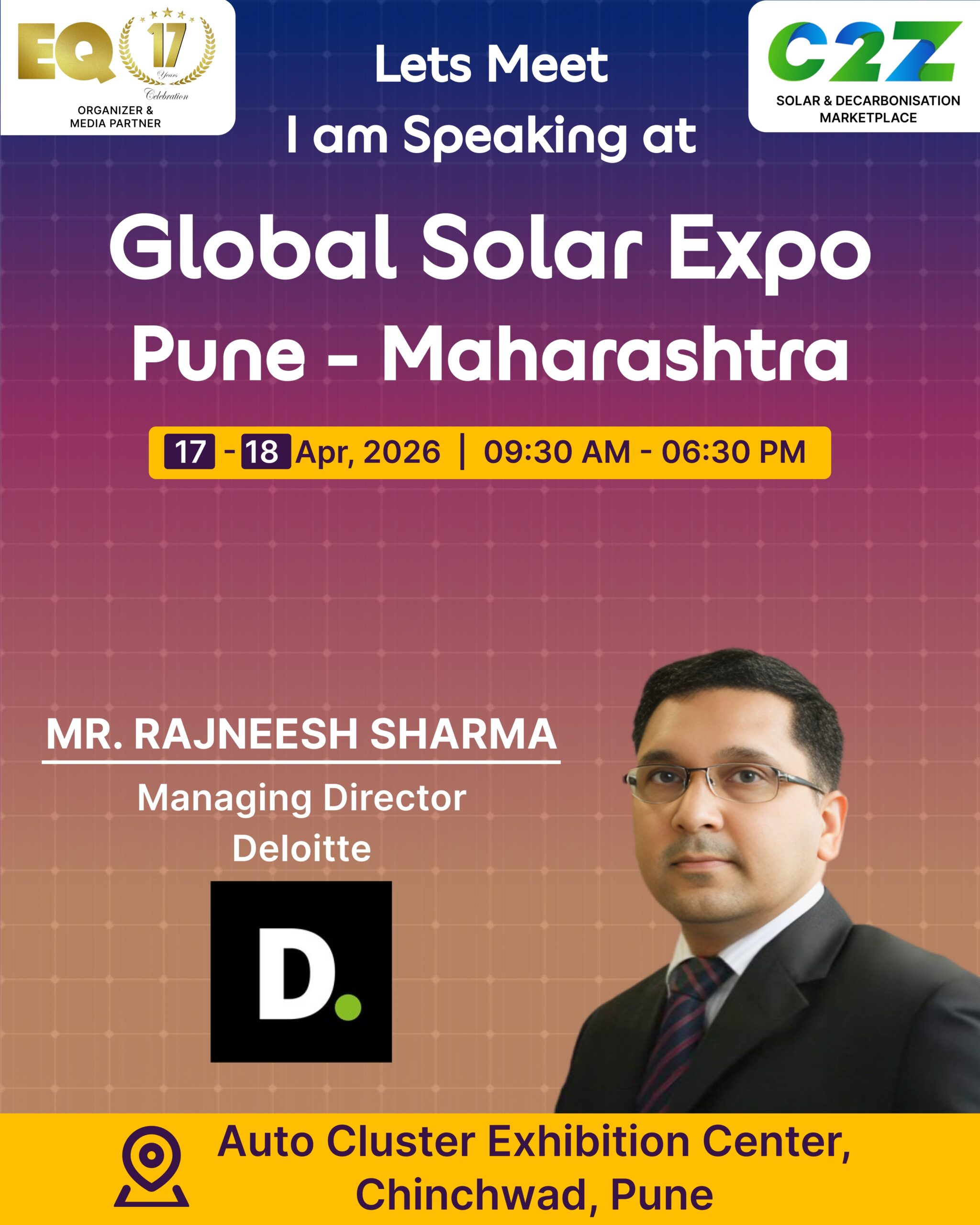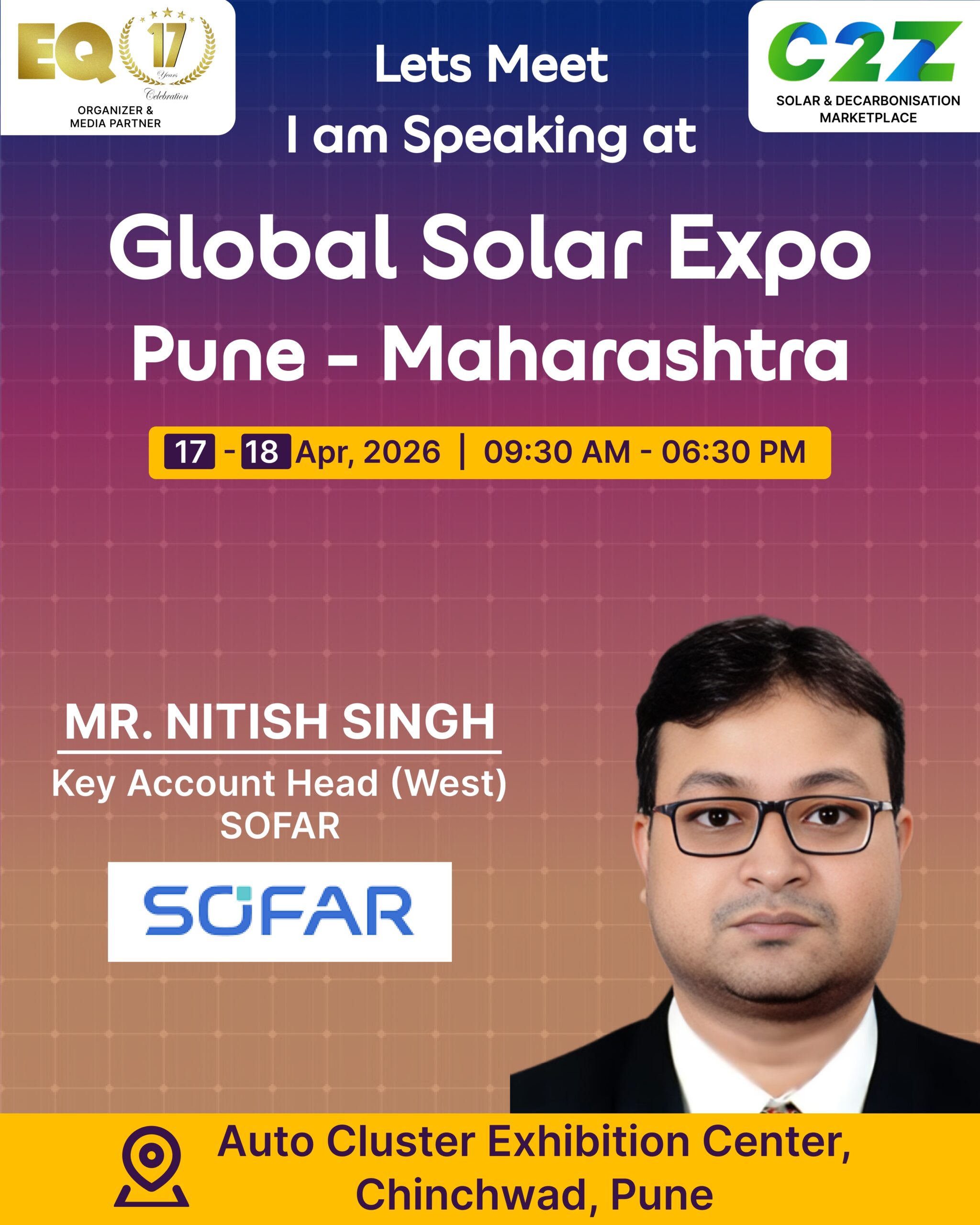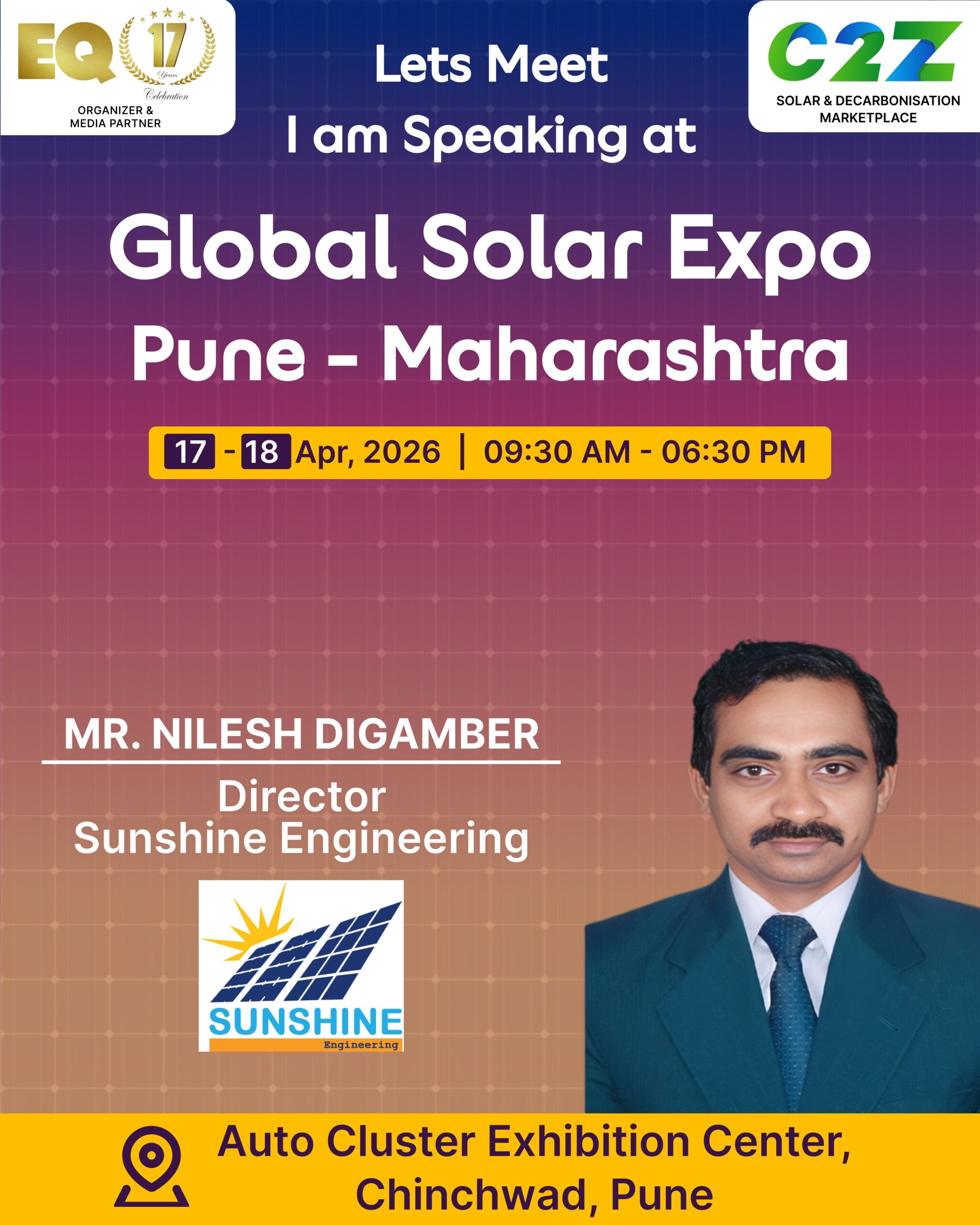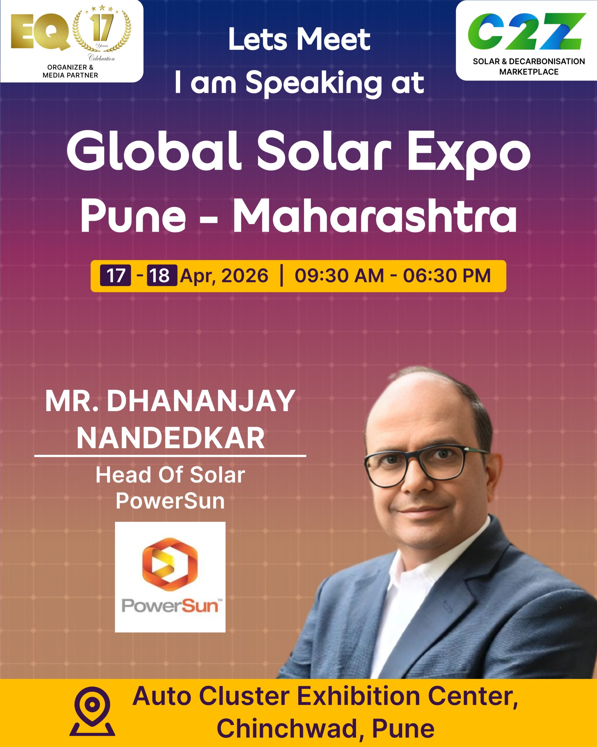 Organised by EQ International, the Pune edition is set to make a powerful mark at on 17–18 April 2026. This mega event will bring together the leading names in solar, renewable energy, sustainability, and clean technologies.