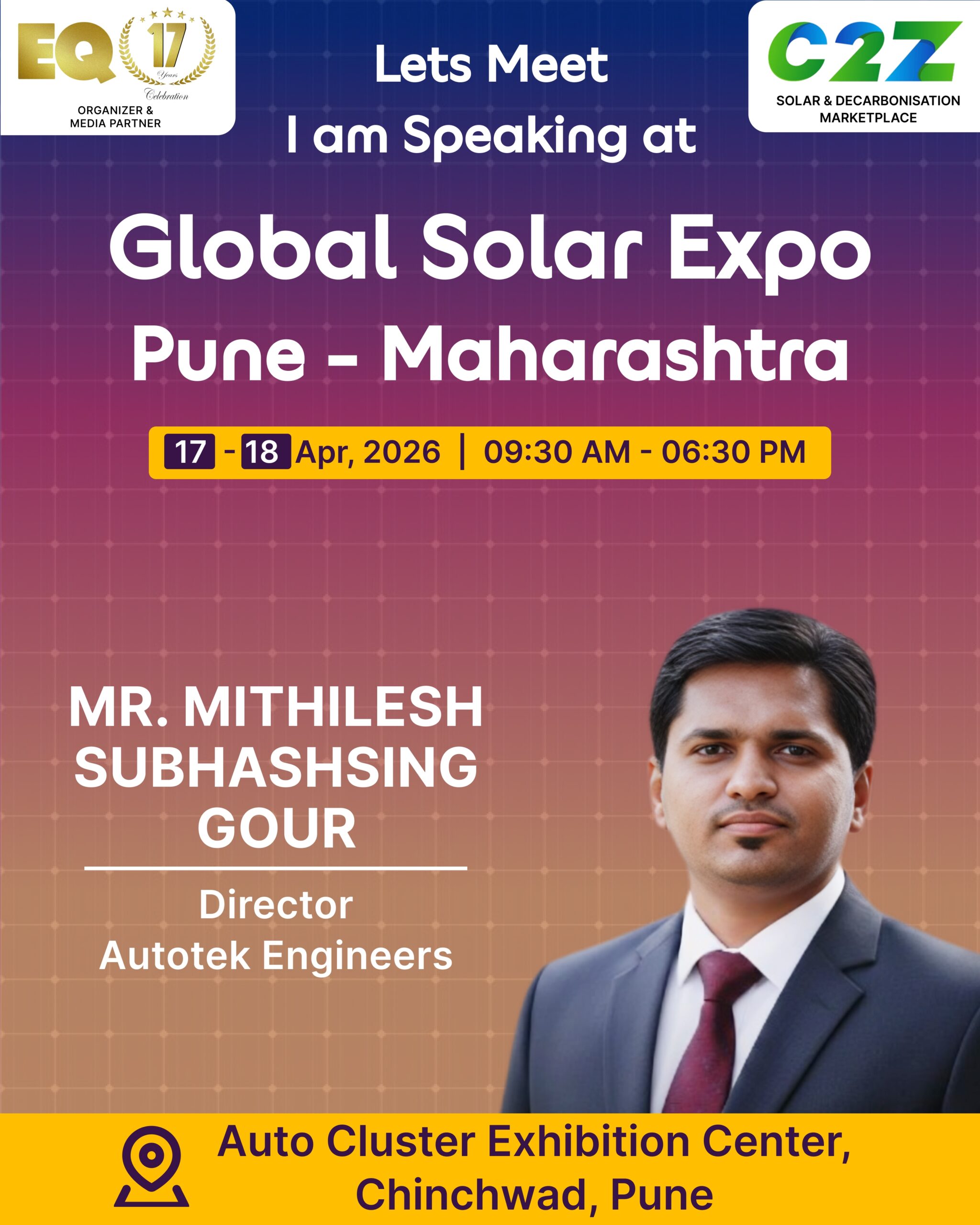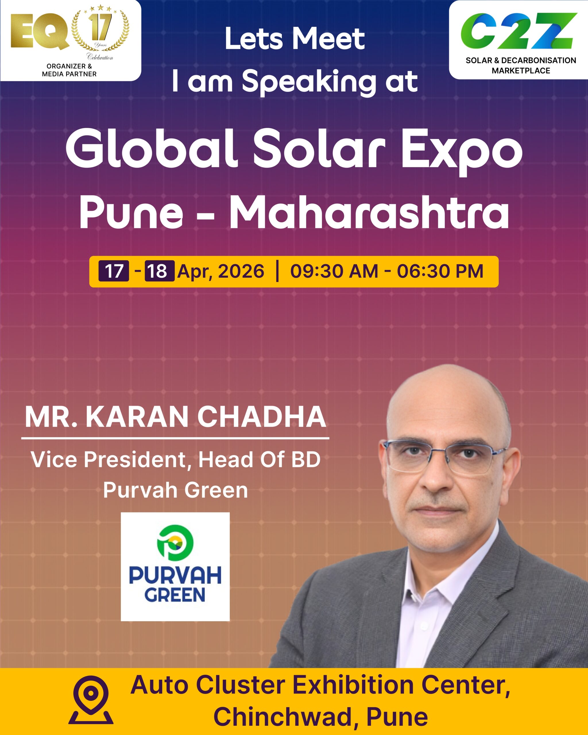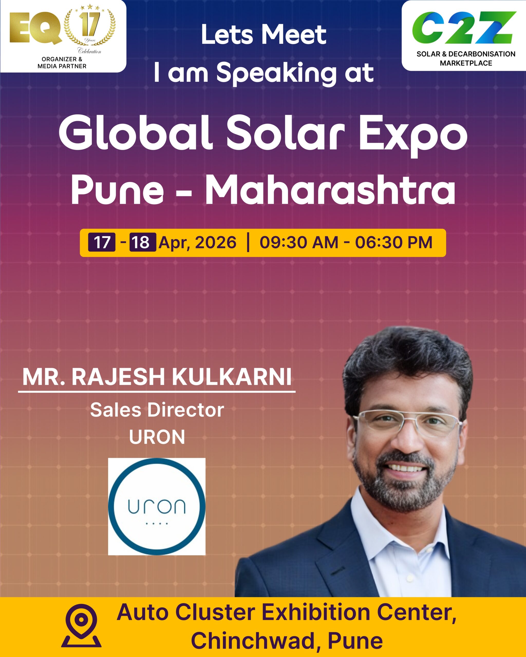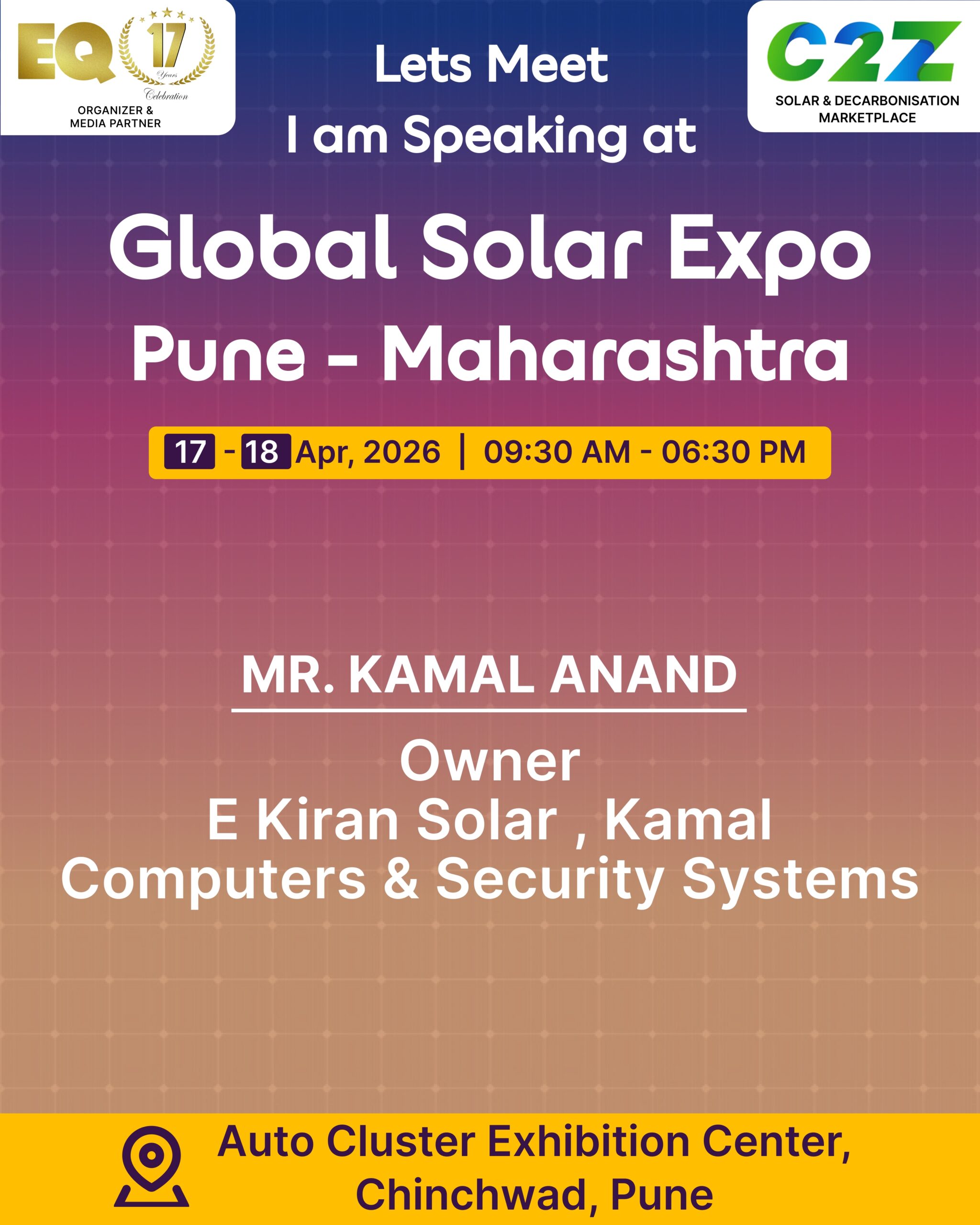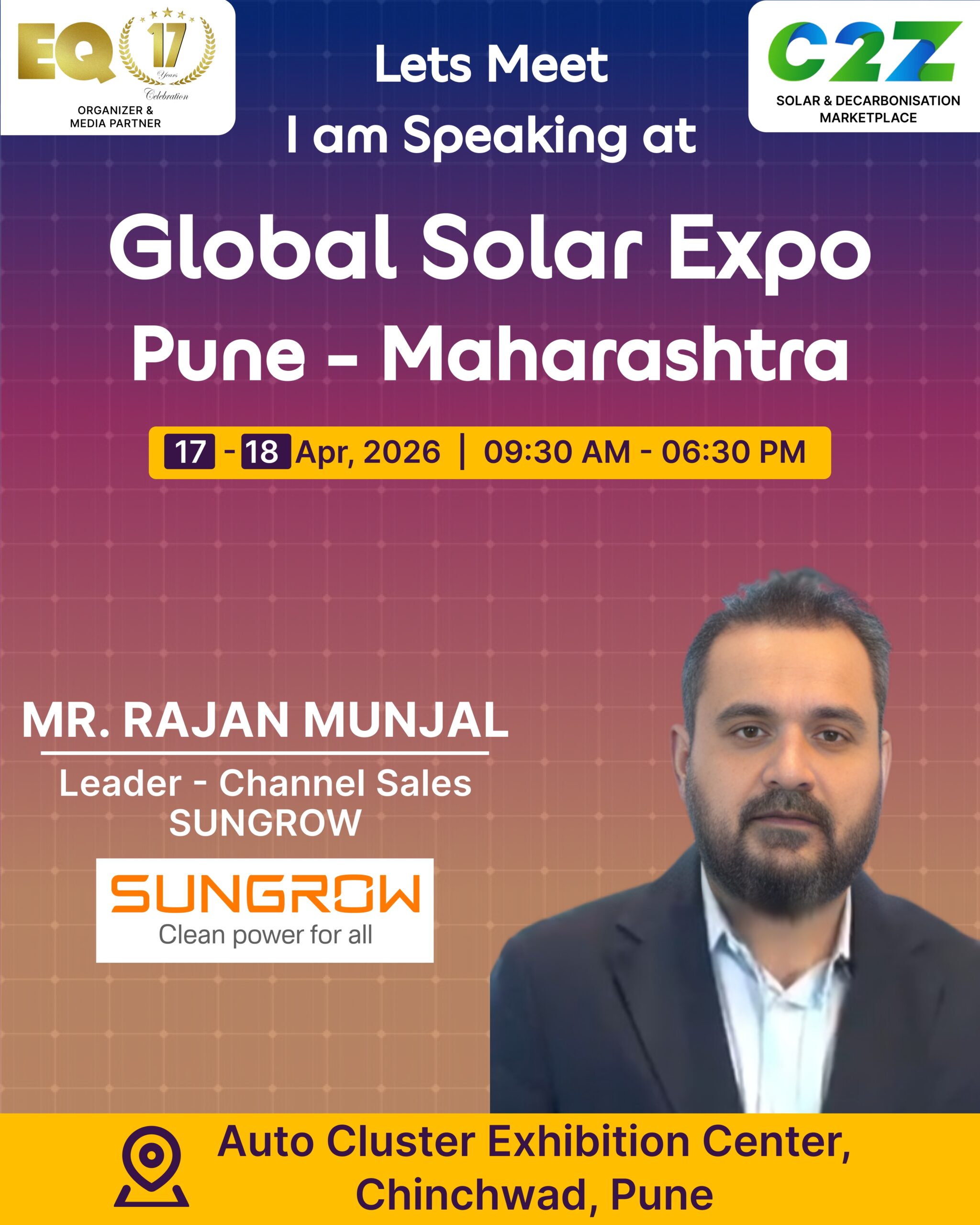Organised by EQ International, the Pune edition is set to make a powerful mark at on 17–18 April 2026. This mega event will bring together the leading names in solar, renewable energy, sustainability, and clean technologies.